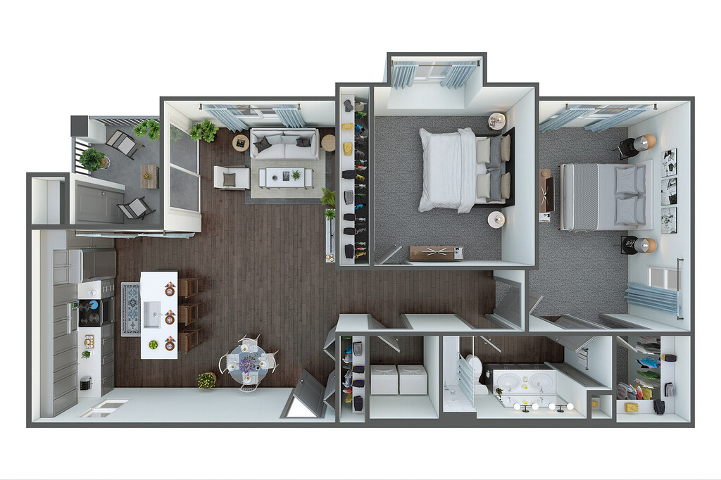 Modelo de apartamento: A2Desde $1,4451 Dormitorio, 1 Baño, 889 sq ftDisponible November 21, 2025![]()