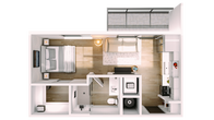 1 Dormitorio, 1 Baño, 690 pies²Disponible AhoraGalería del Modelo
