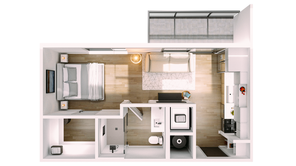Estudio, 1 Baño, 476 pies²El más grandeEsta opción tiene las unidades más grandes para este modeloGalería del Modelo