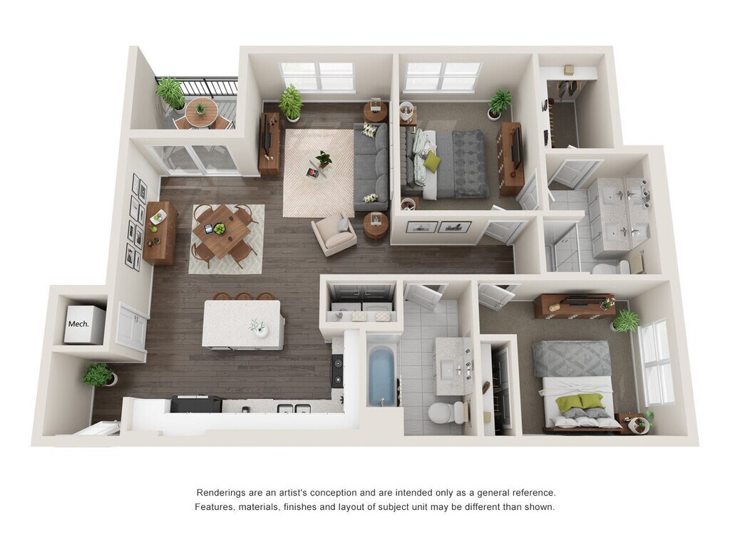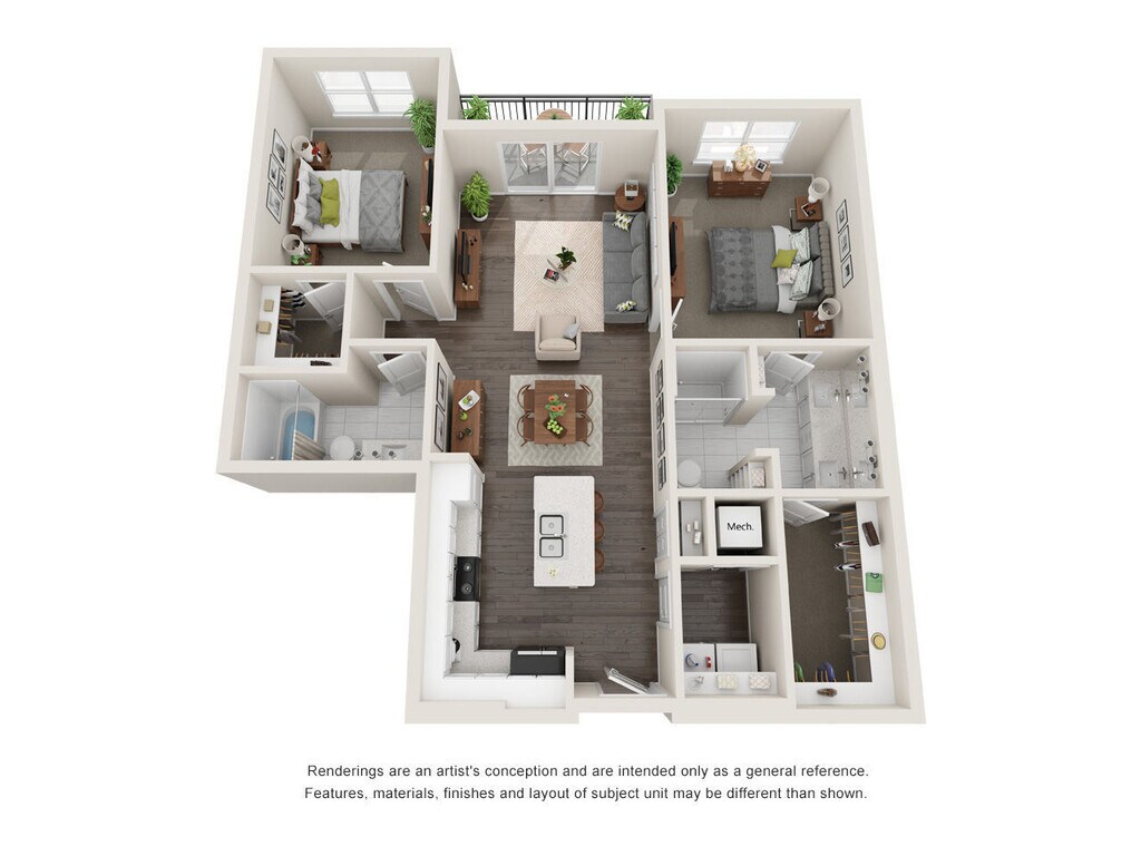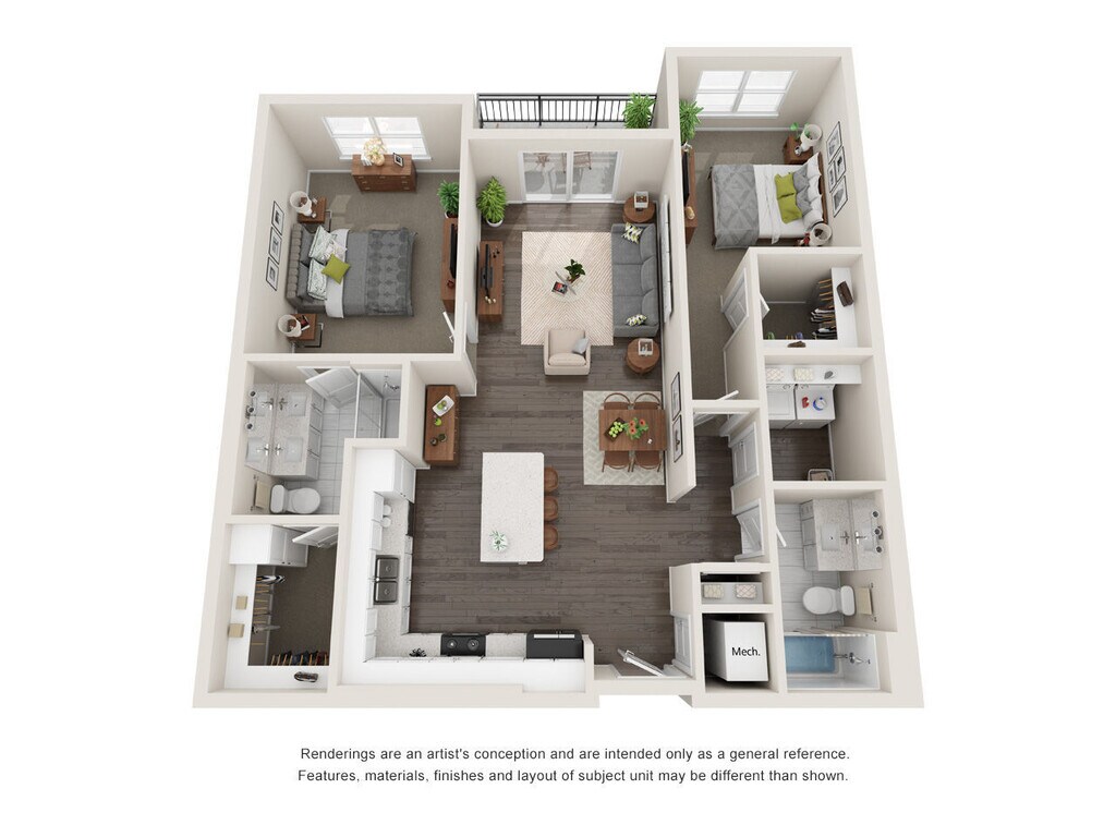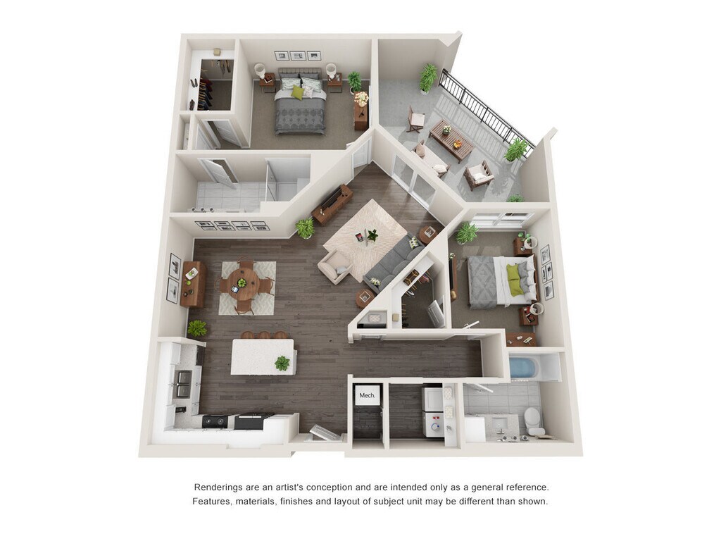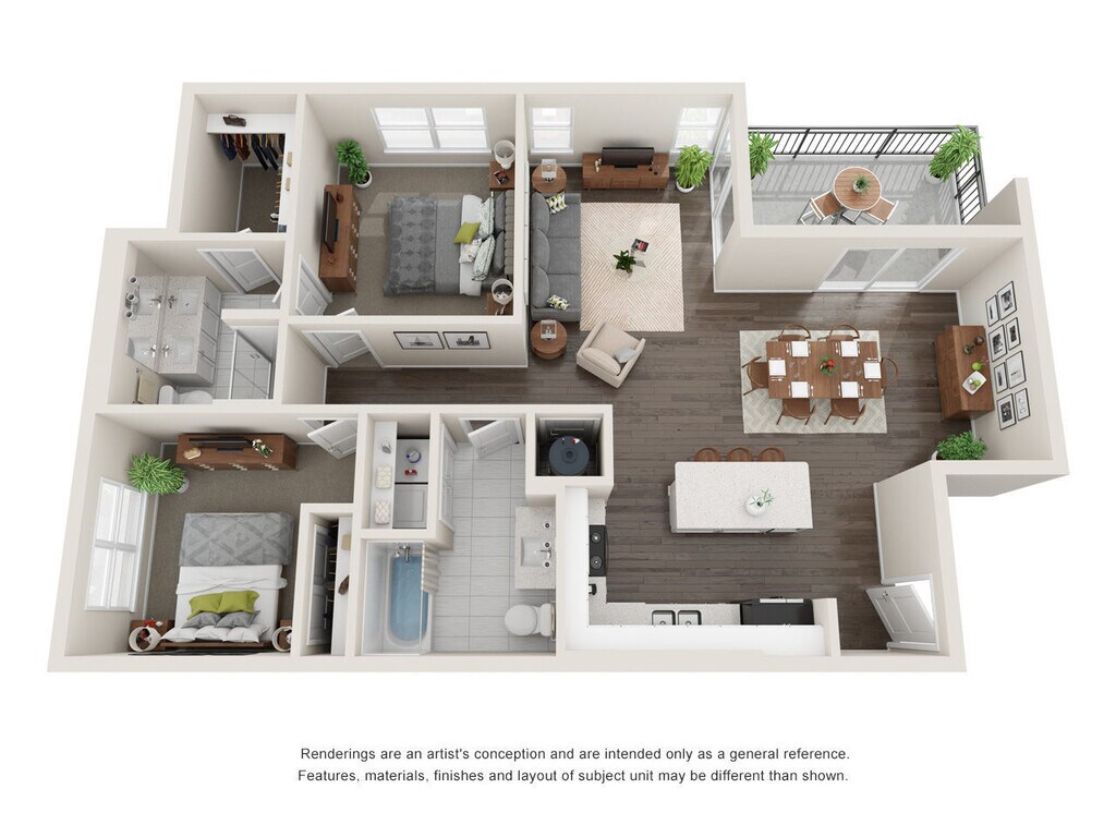 Modelo de apartamento: B1Desde $2,0002 Dormitorios, 2 Baños, 1033 sq ftDisponible Ahora![]()