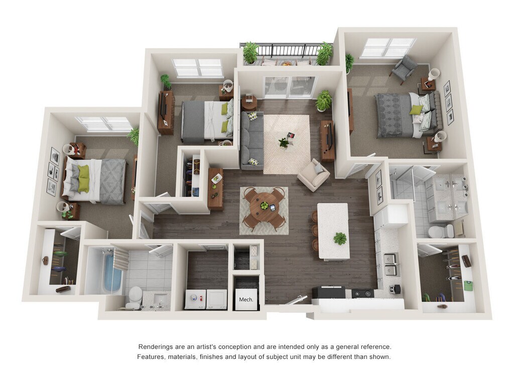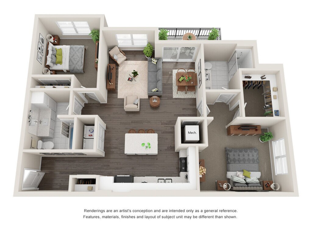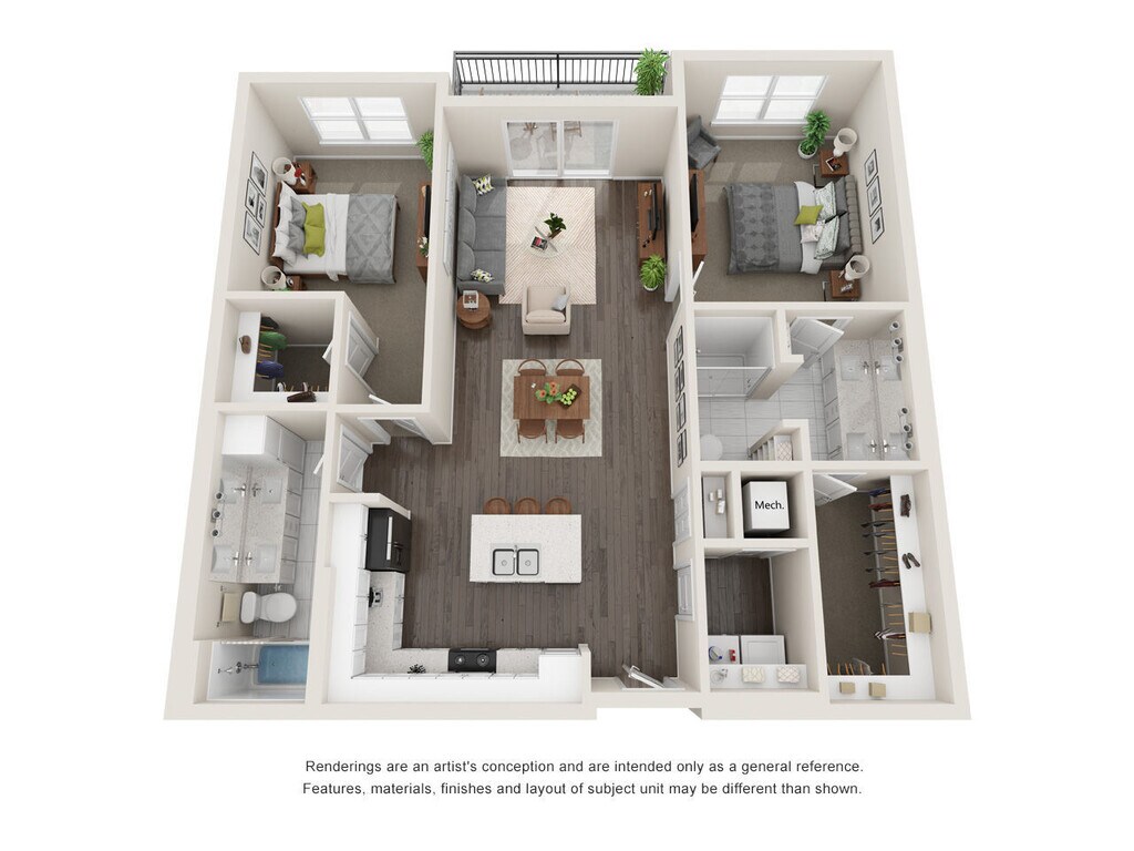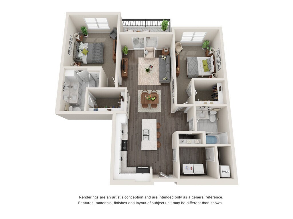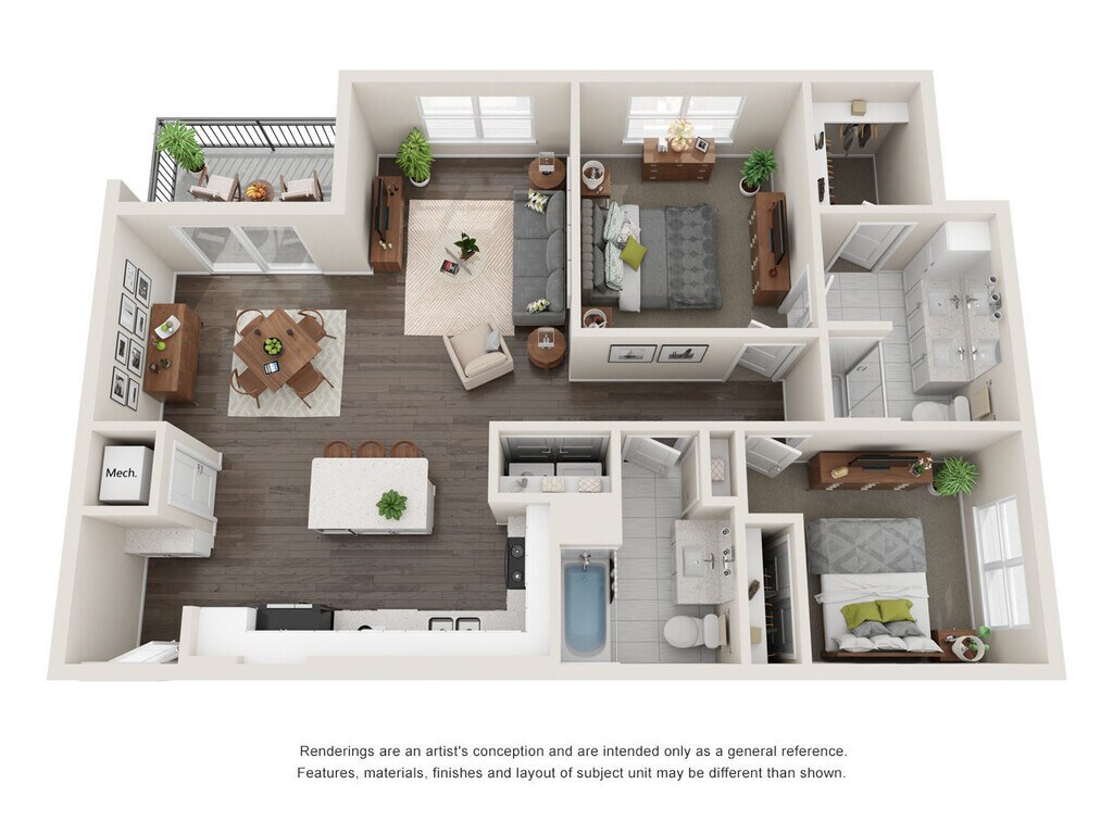 Modelo de apartamento: B1Desde $2,0002 Dormitorios, 2 Baños, 1033 sq ftDisponible Ahora![]()