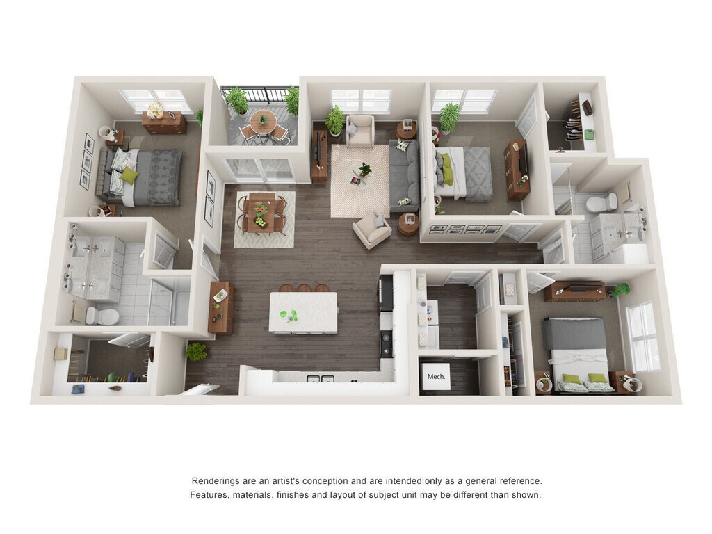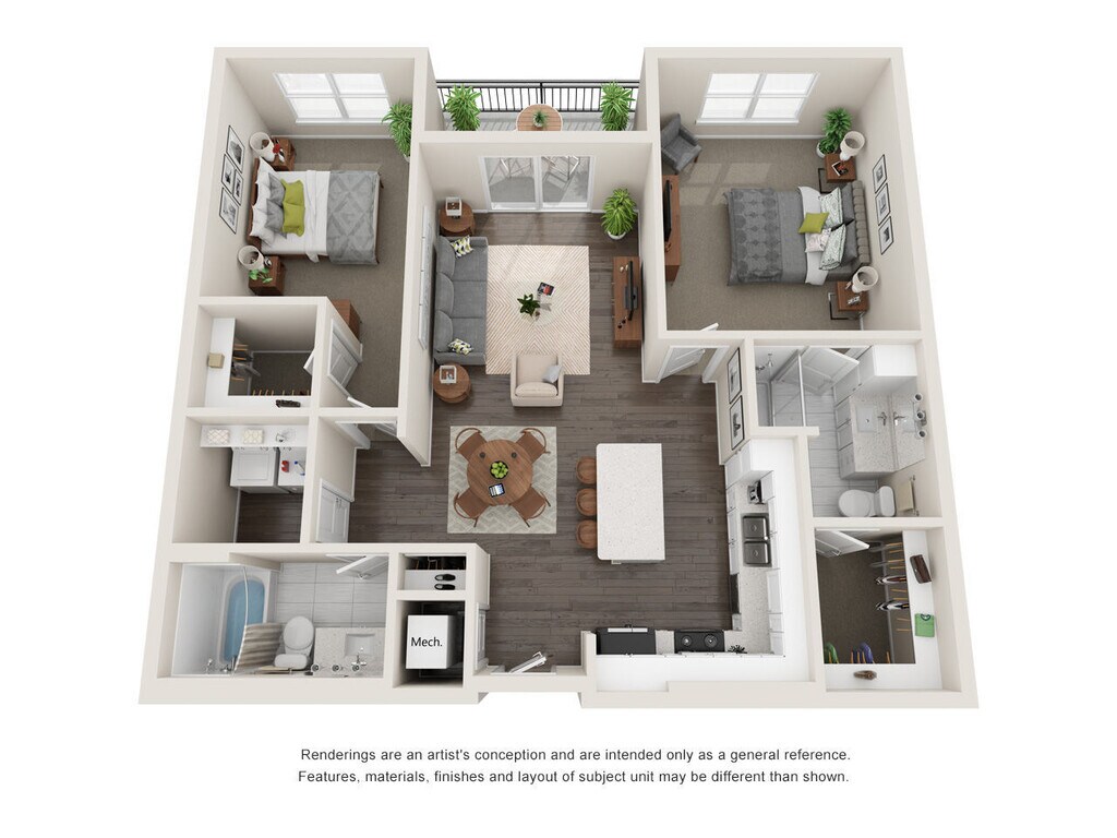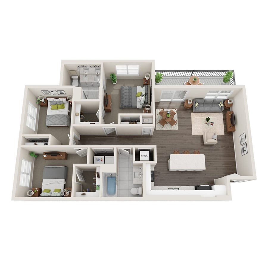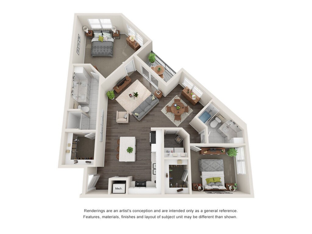 Modelo de apartamento: B5Desde $2,0512 Dormitorios, 2 Baños, 1059 sq ftDisponible Ahora![]()