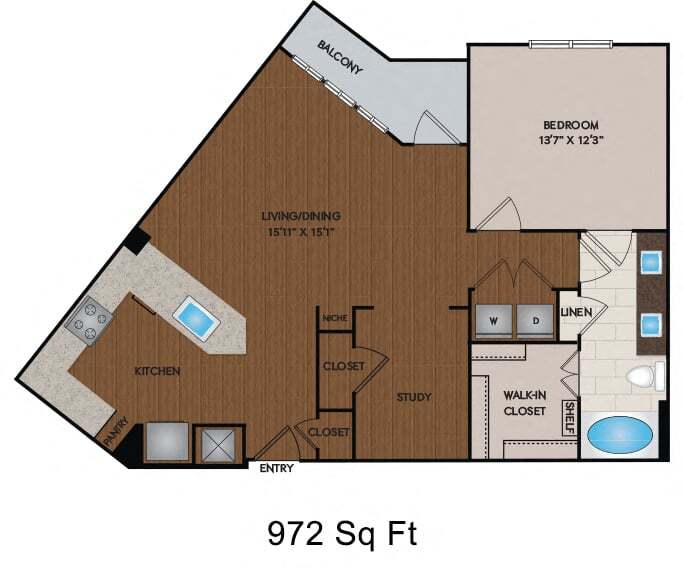 1 Dormitorio, 1 Baño, 796-972 pies²Disponible Nov 21El más grandeEsta opción tiene las unidades más grandes para este modeloGalería del Modelo