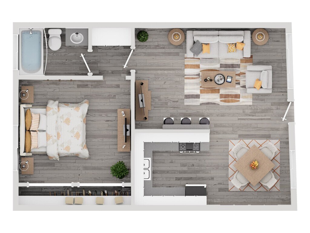 1 Dormitorio, 1 Baño, 375 pies²Disponible AhoraGalería del Modelo