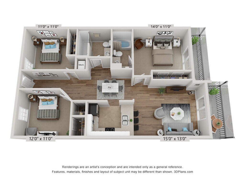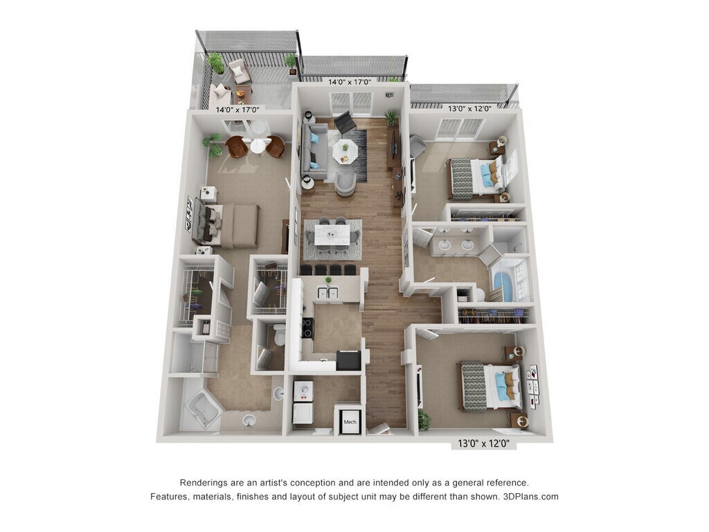 Modelo de apartamento: C1Desde $1,9003 Dormitorios, 2 Baños, 1394 sq ftDisponible Ahora![]()