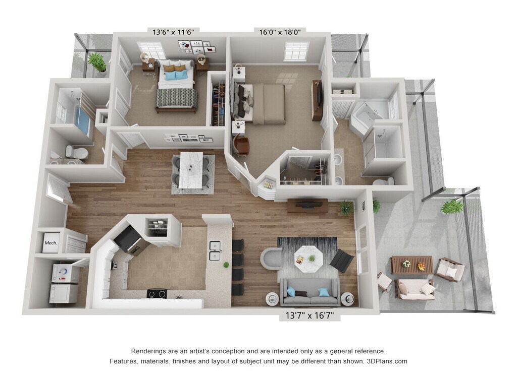 Modelo de apartamento: C2Desde $2,1103 Dormitorios, 2 Baños, 1739 sq ftDisponible December 1, 2025![]()