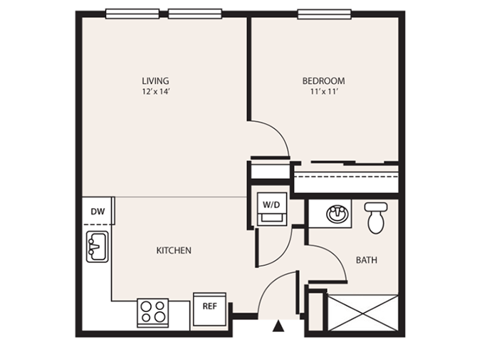 A10A - Plano 1 Unidad de apartamento: 332Modelo de apartamento: A10A$1,1991 Dormitorio, 1 Baño, 546 sq ftDisponible AhoraPlano: A9