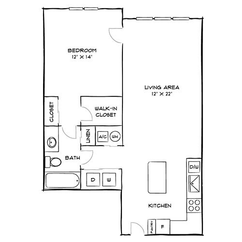 1 Dormitorio, 1 Baño, 750 pies²Disponible AhoraGalería del Modelo