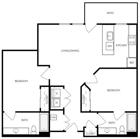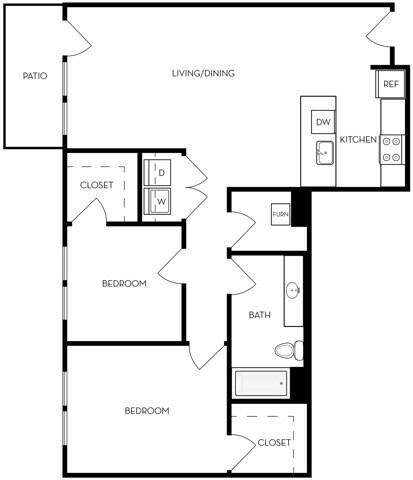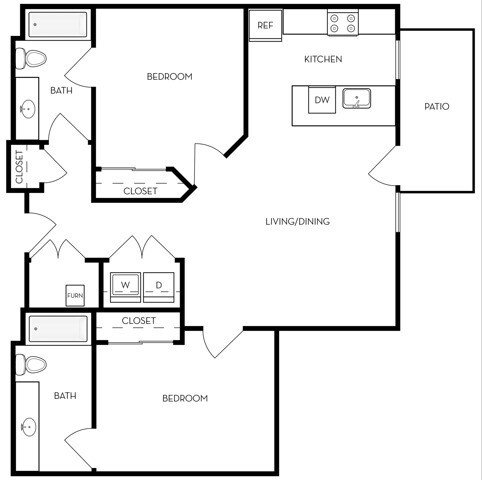 2x2 (Med) - Plano 1 Unidad de apartamento: 1-102Modelo de apartamento: 2x2 (Med)2 Dormitorios, 2 Baños, 1000 sq ftDisponible December 8, 2025Plano: 2x1