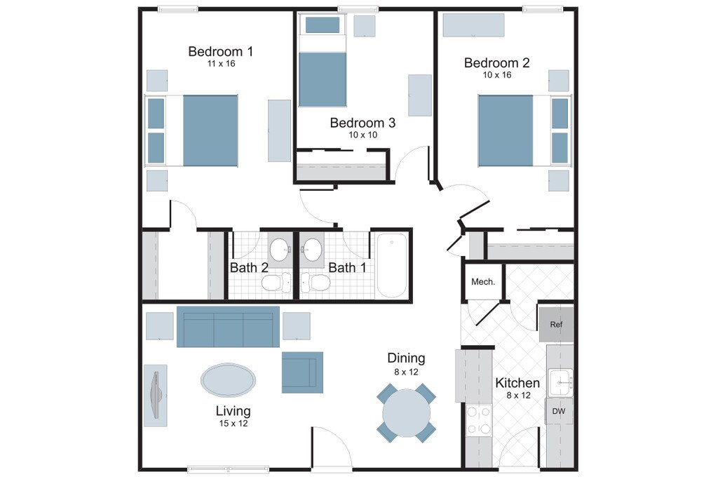 1 Dormitorio, 1 Baño, 1010 pies²El más grandeEsta opción tiene las unidades más grandes para este modeloDetalles de Diponibilidad