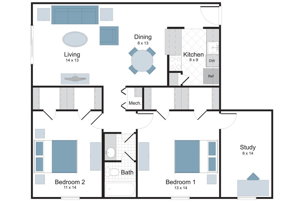 1 Bedroom, 1 Bathroom - Plano 1 1 Bedroom, 1 Bathroom Study