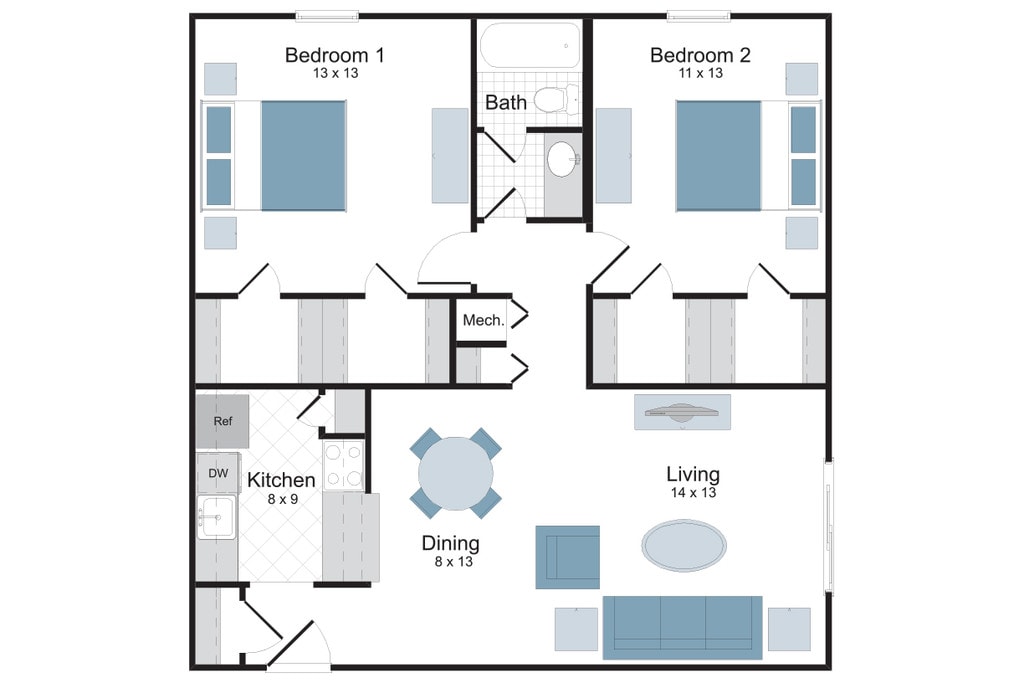 1 Bedroom, 1 Bathroom - Plano 1 1 Bedroom, 1 Bathroom