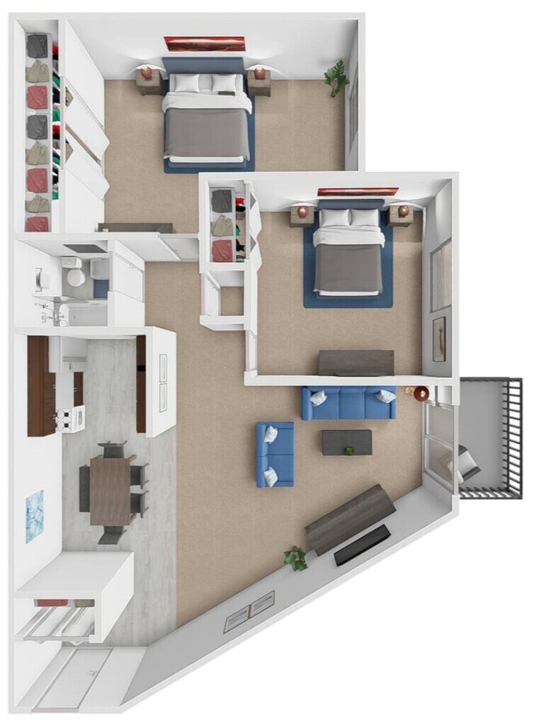 2 Dormitorios, 1 Baño, 860 pies²Precio Mensual TotalDisponible AhoraGalería del Modelo