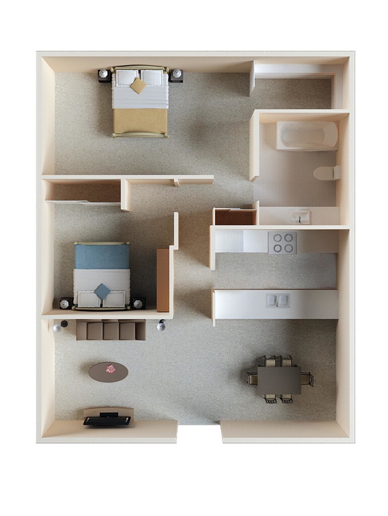 2 Dormitorios, 1 Baño, 850 pies²Galería del Modelo