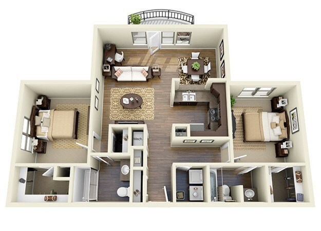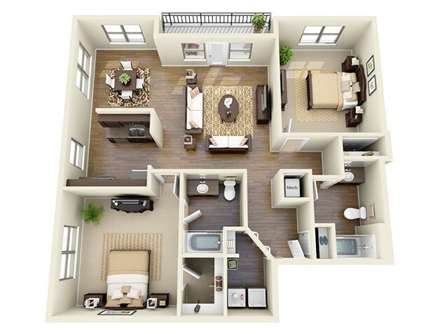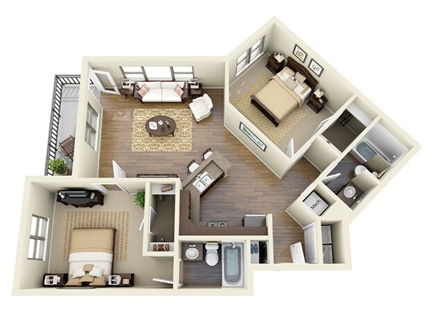 Modelo de apartamento: ExecutiveDesde $1,2251 Dormitorio, 1 Baño, 707 sq ftDisponible Ahora![]()