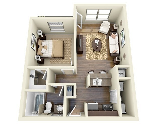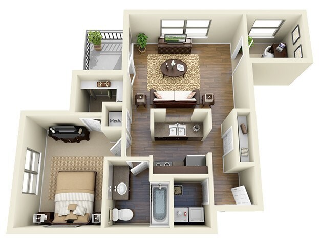 1 Dormitorio, 1 Baño, 707 pies²Disponible AhoraGalería del Modelo