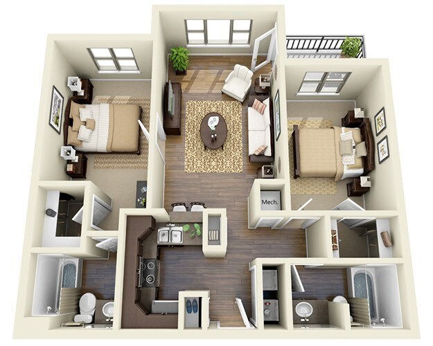 2 Dormitorios, 2 Baños, 967 pies²Disponible AhoraGalería del Modelo