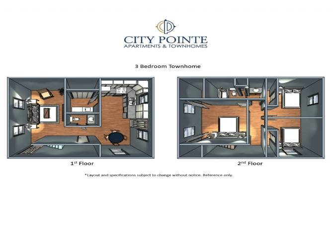 City Pointe ofrece apartamentos de 1 a 3 Dormitorios desde $999 con 800–1,150 pies cuadrados. Aquí está el precio actual y la disponibilidad: