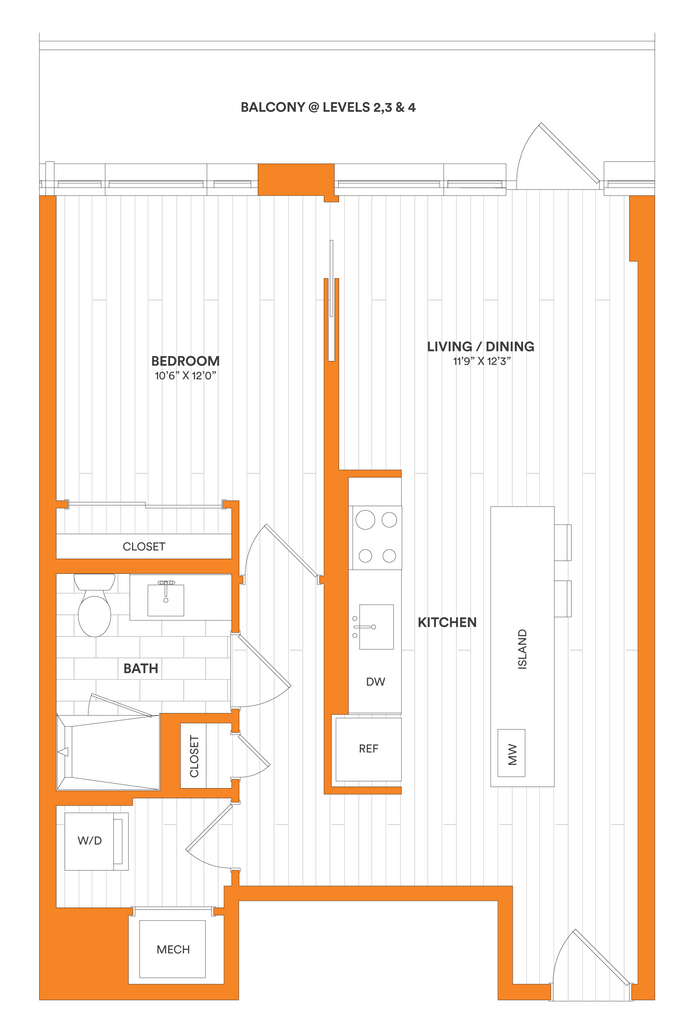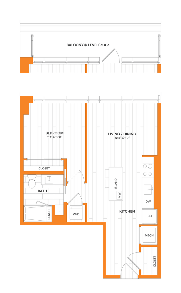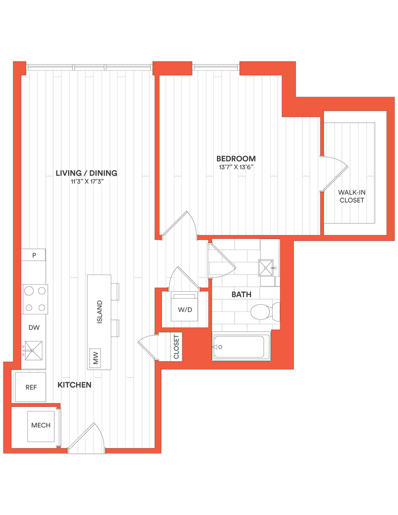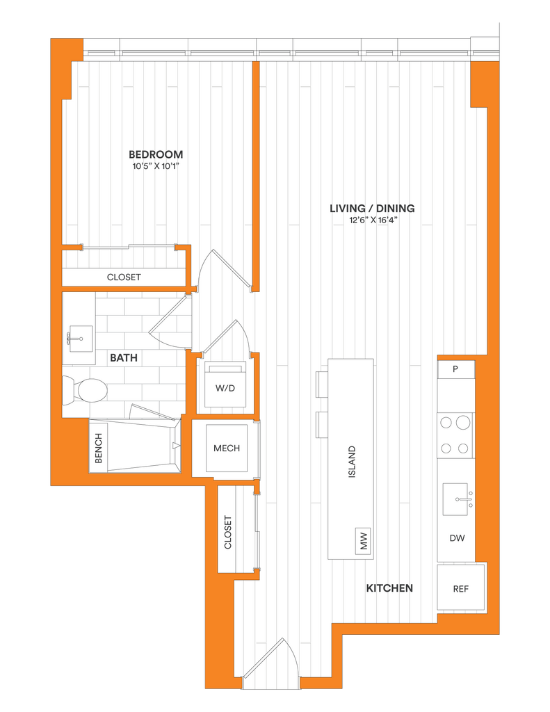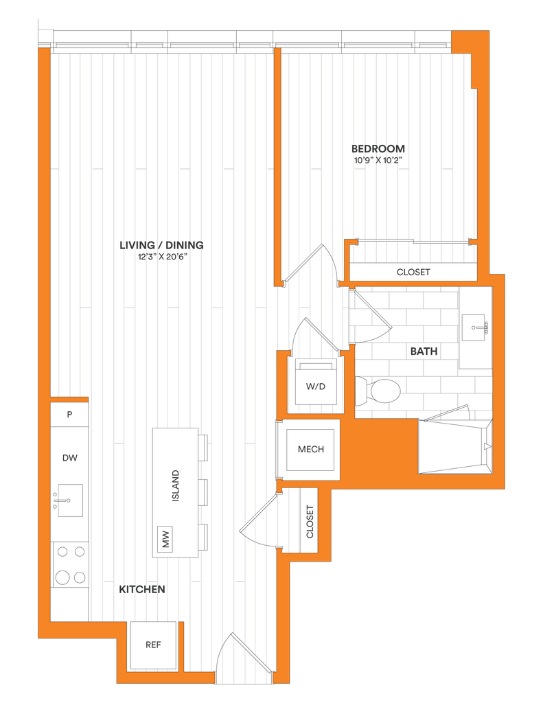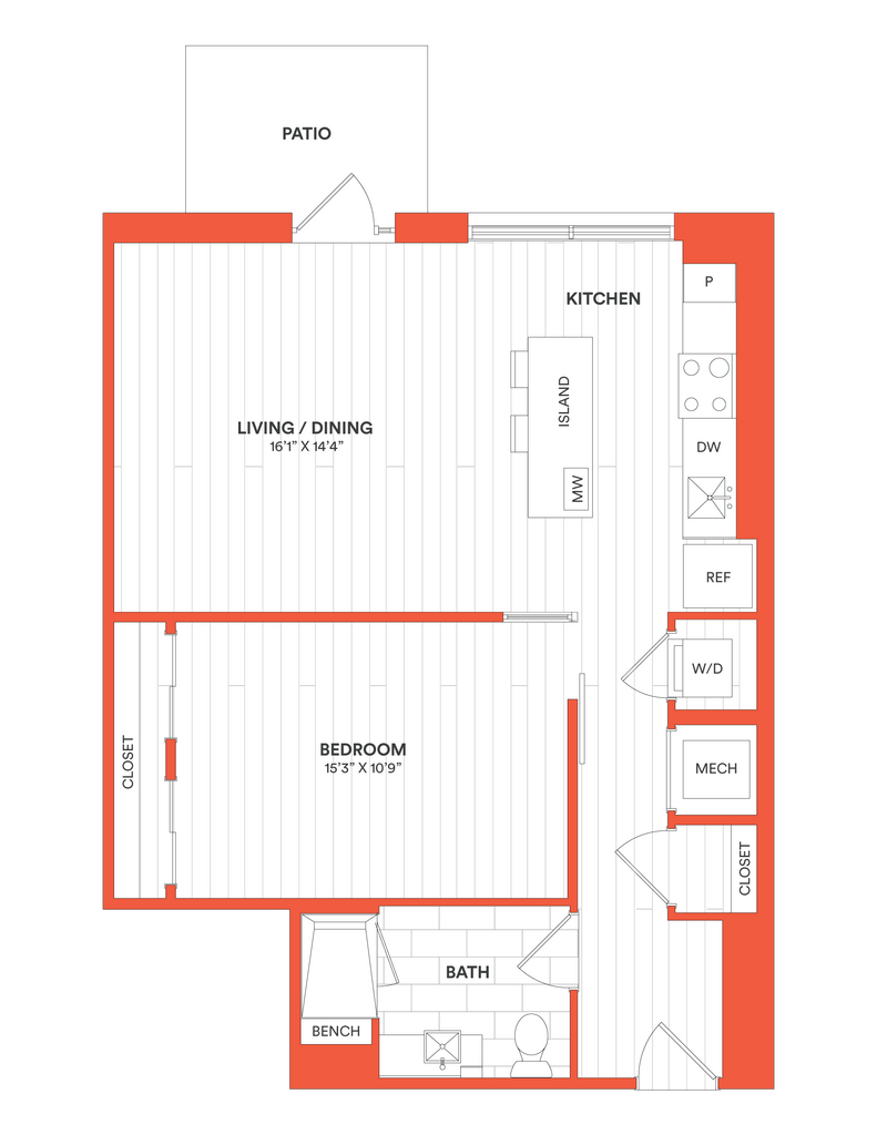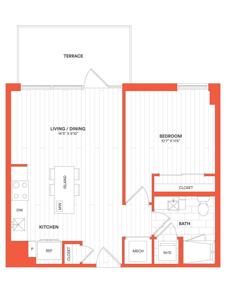 Unidad: F-507 - Imagen 1 Unidad de apartamento: F-207Modelo de apartamento: 1 Bed/1 Bath JR-F TYP 07$2,6061 Dormitorio, 1 Baño, 713 sq ftDisponible Ahora![]()