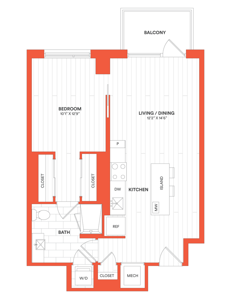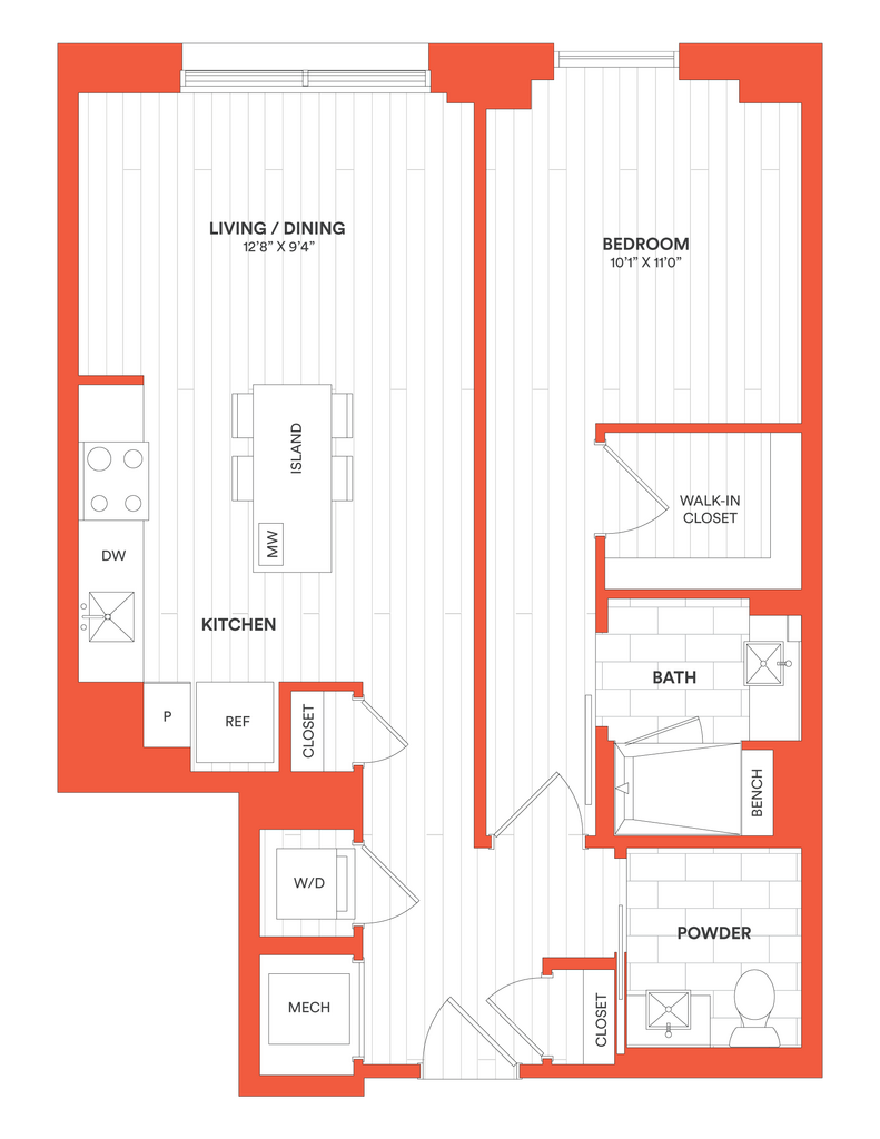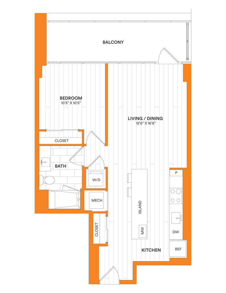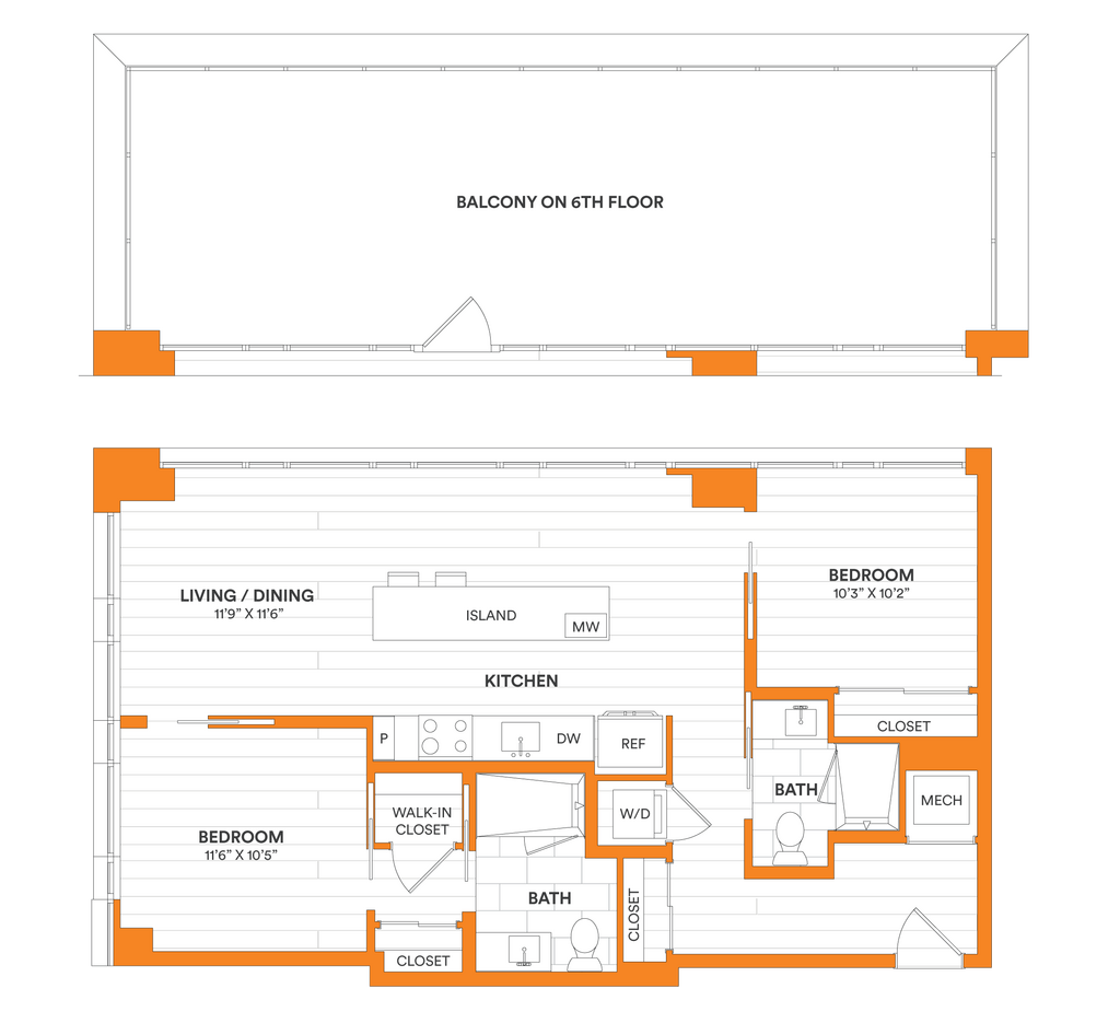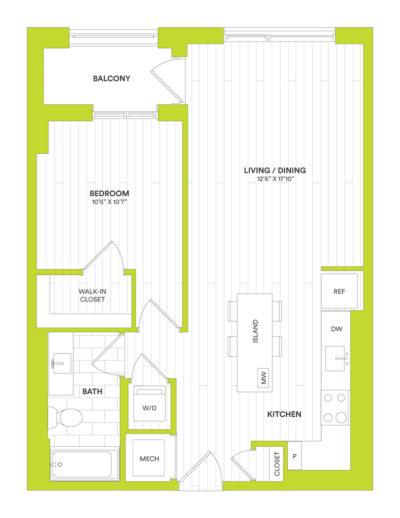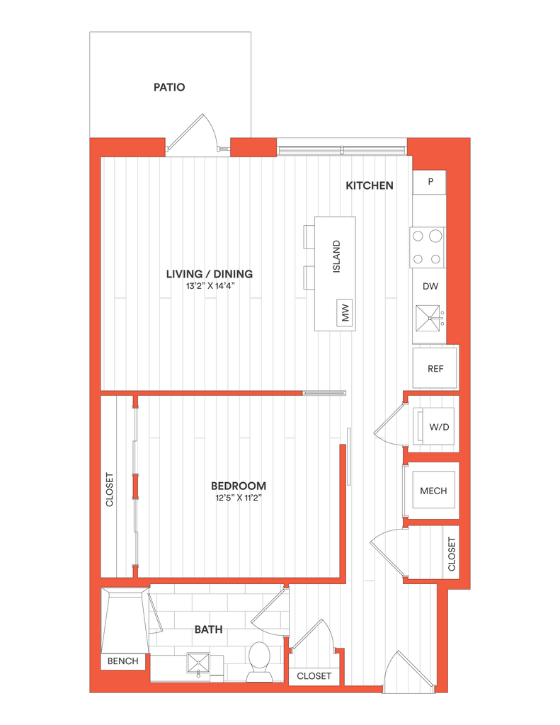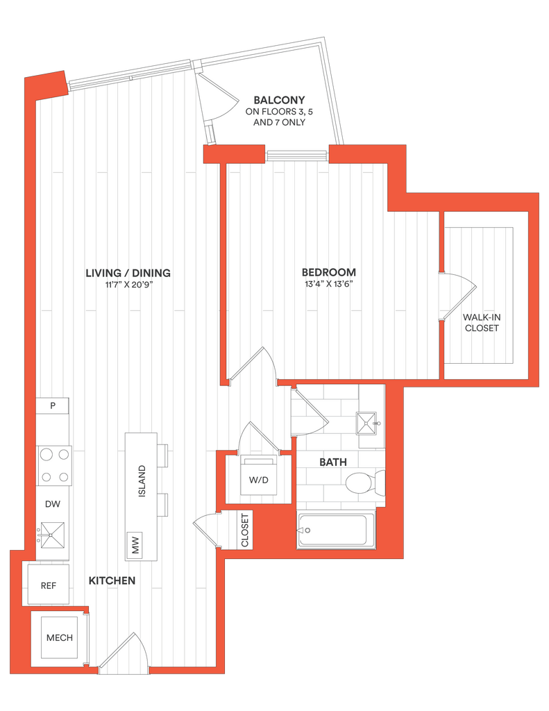 Unidad: F-507 - Imagen 1 Unidad de apartamento: F-207Modelo de apartamento: 1 Bed/1 Bath JR-F TYP 07$2,6061 Dormitorio, 1 Baño, 713 sq ftDisponible Ahora![]()