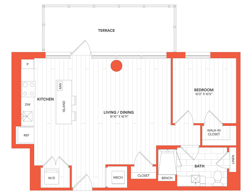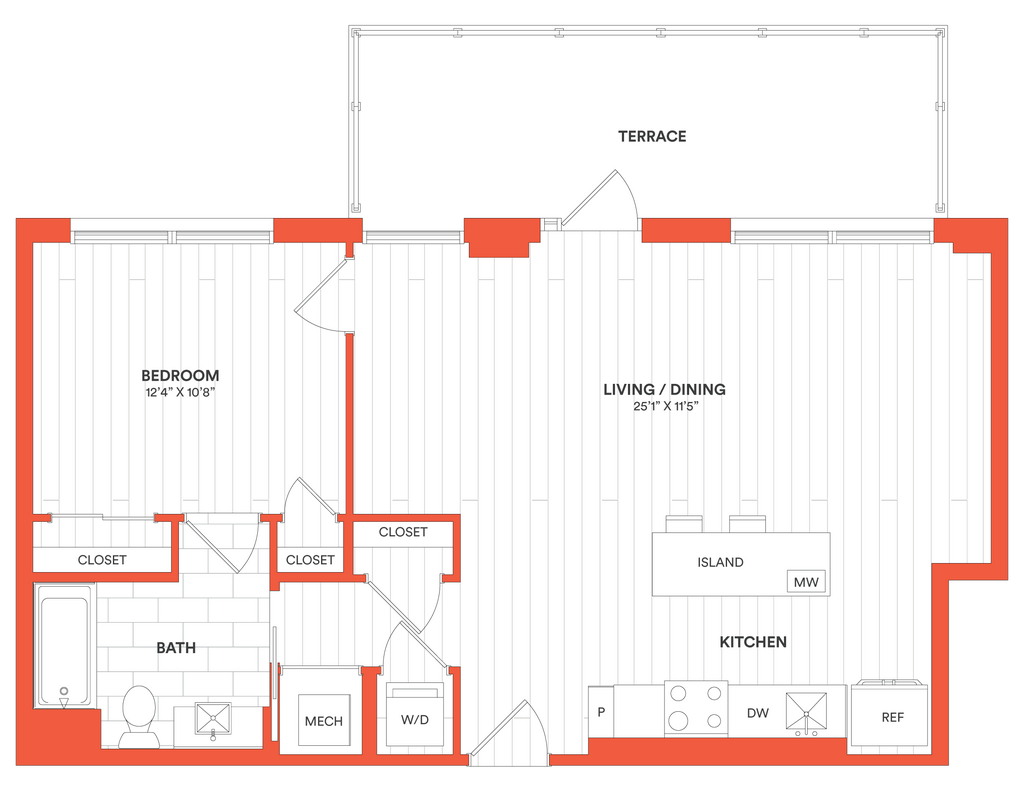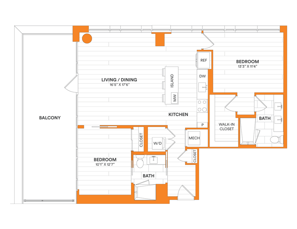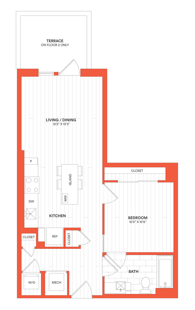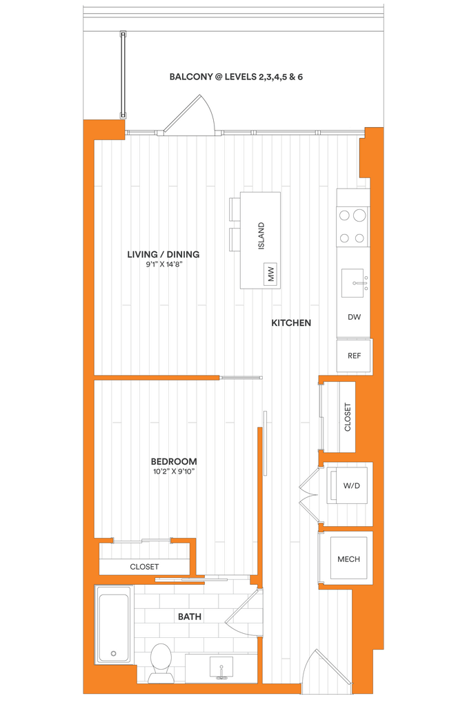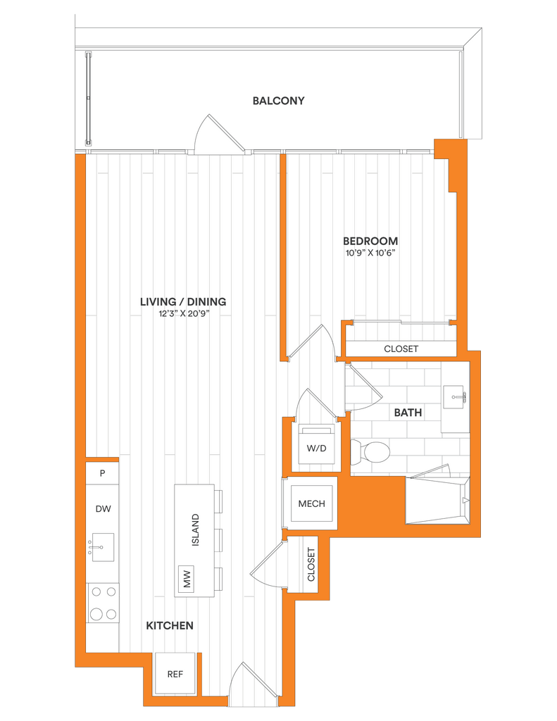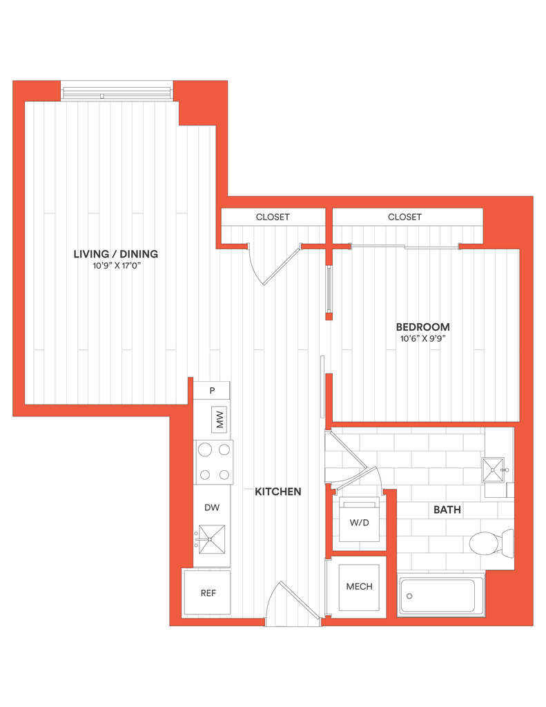 Unidad: F-507 - Imagen 1 Unidad de apartamento: F-207Modelo de apartamento: 1 Bed/1 Bath JR-F TYP 07$2,6061 Dormitorio, 1 Baño, 713 sq ftDisponible Ahora![]()