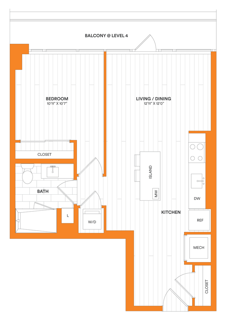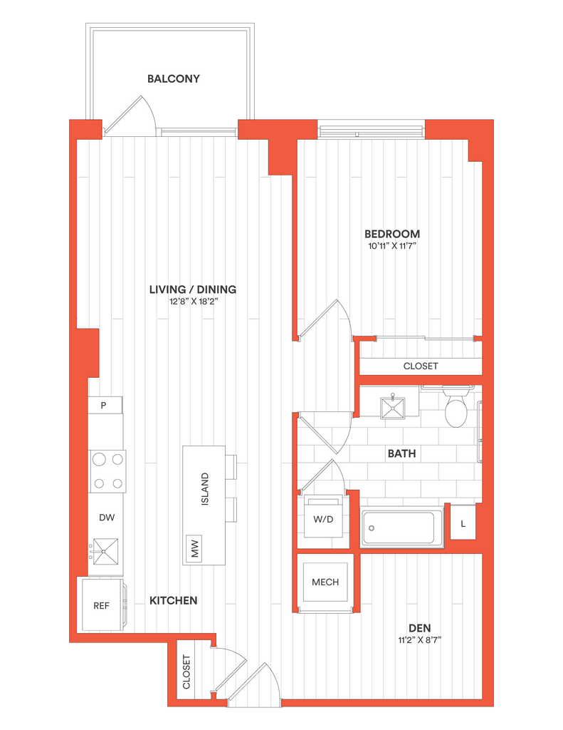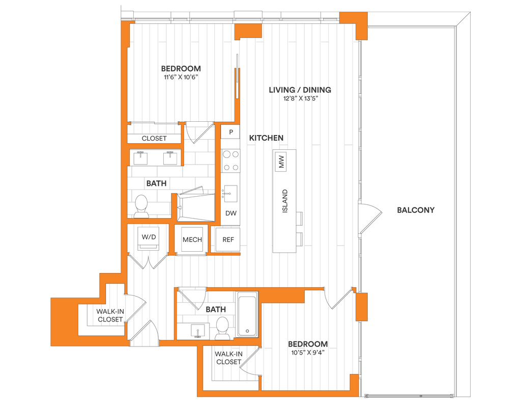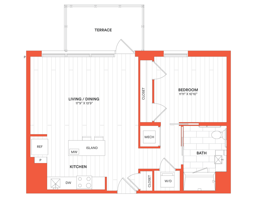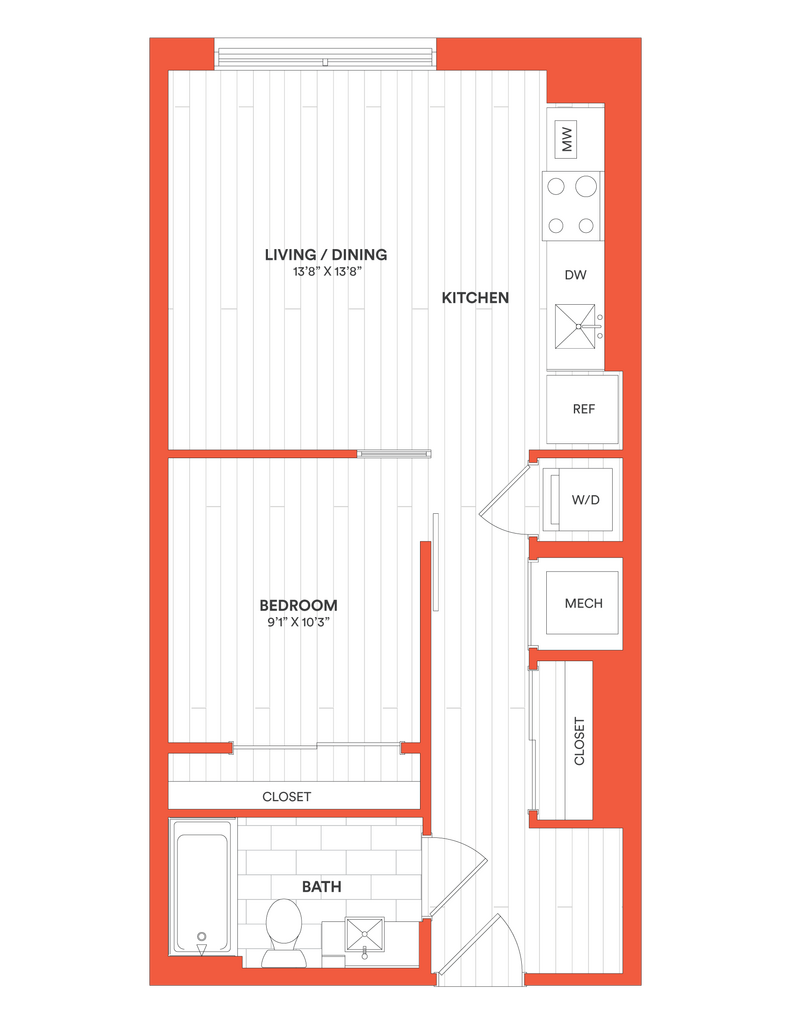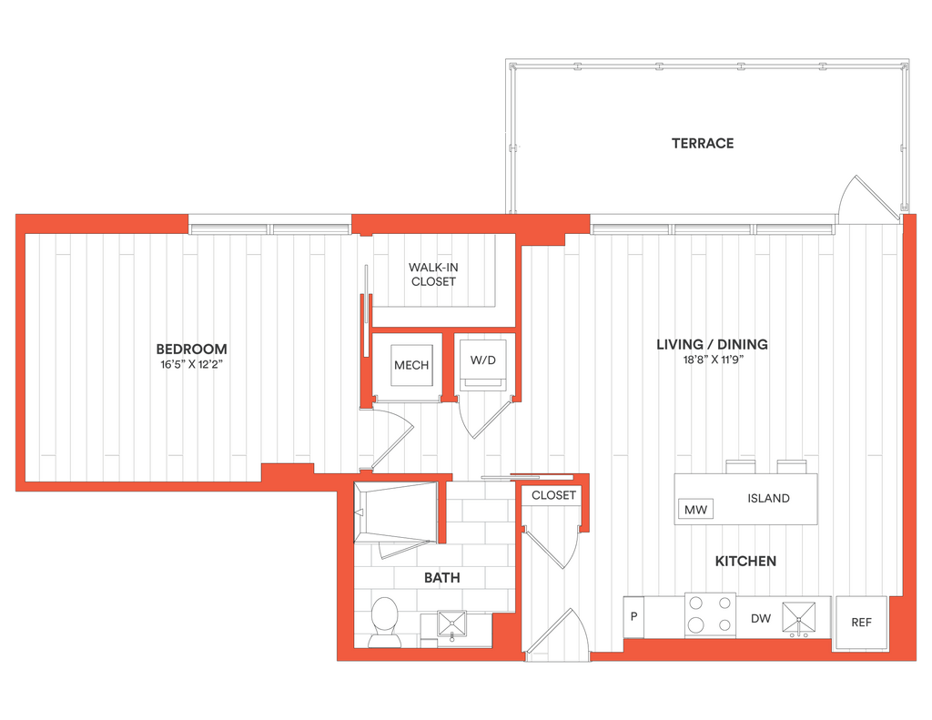 Unidad: F-507 - Imagen 1 Unidad de apartamento: F-207Modelo de apartamento: 1 Bed/1 Bath JR-F TYP 07$2,6061 Dormitorio, 1 Baño, 713 sq ftDisponible Ahora![]()