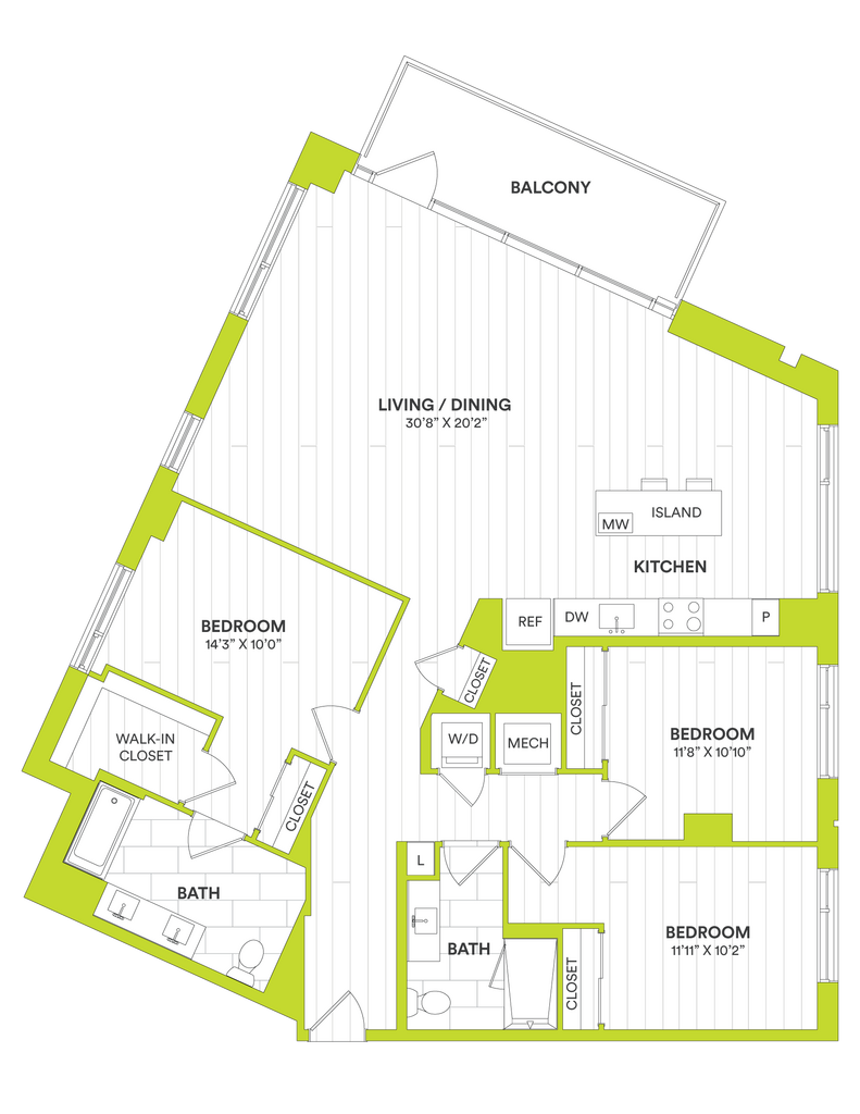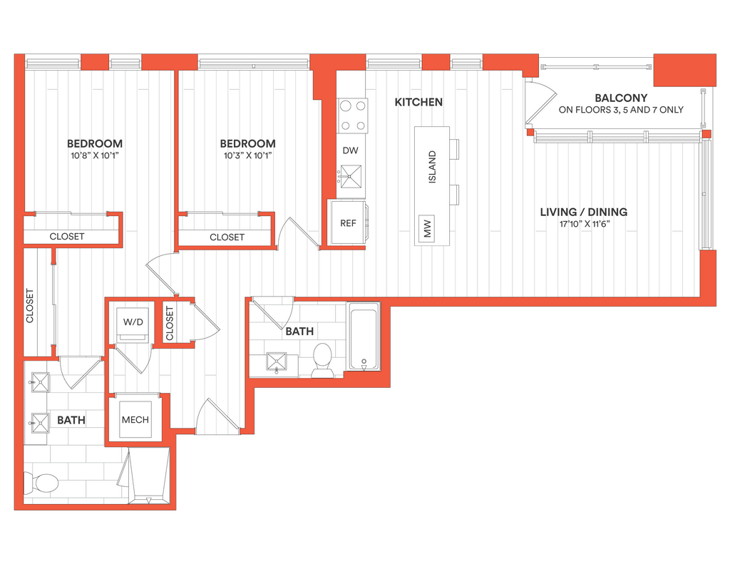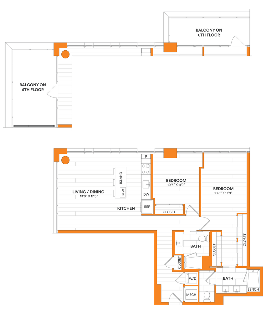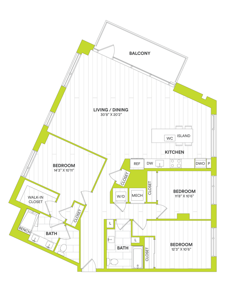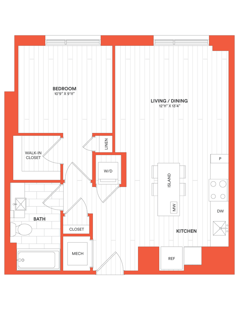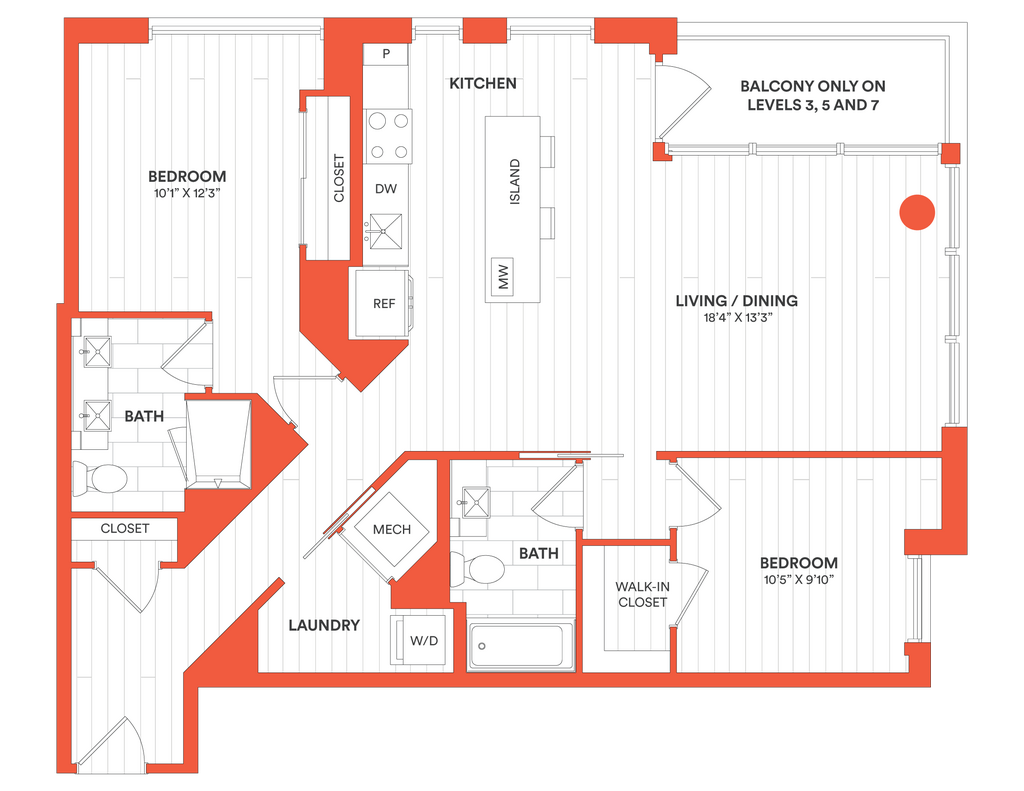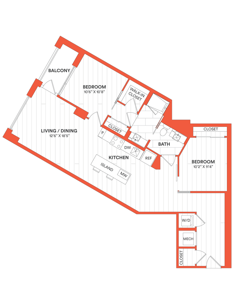 Unidad: F-507 - Imagen 1 Unidad de apartamento: F-207Modelo de apartamento: 1 Bed/1 Bath JR-F TYP 07$2,6061 Dormitorio, 1 Baño, 713 sq ftDisponible Ahora![]()