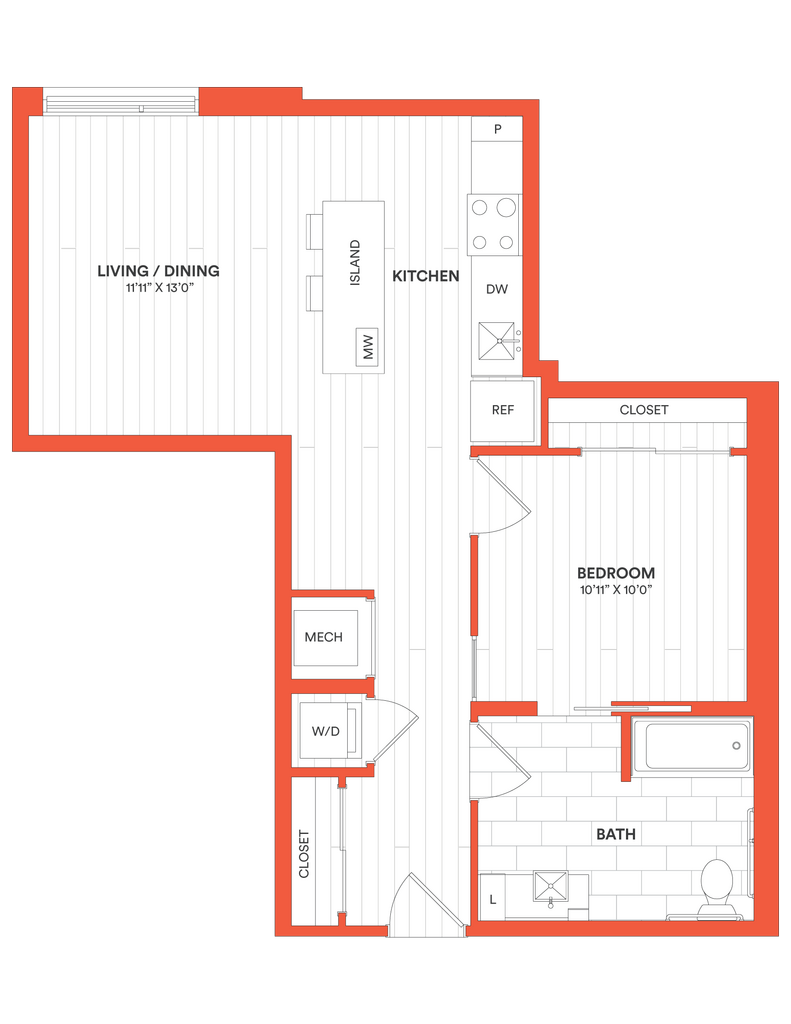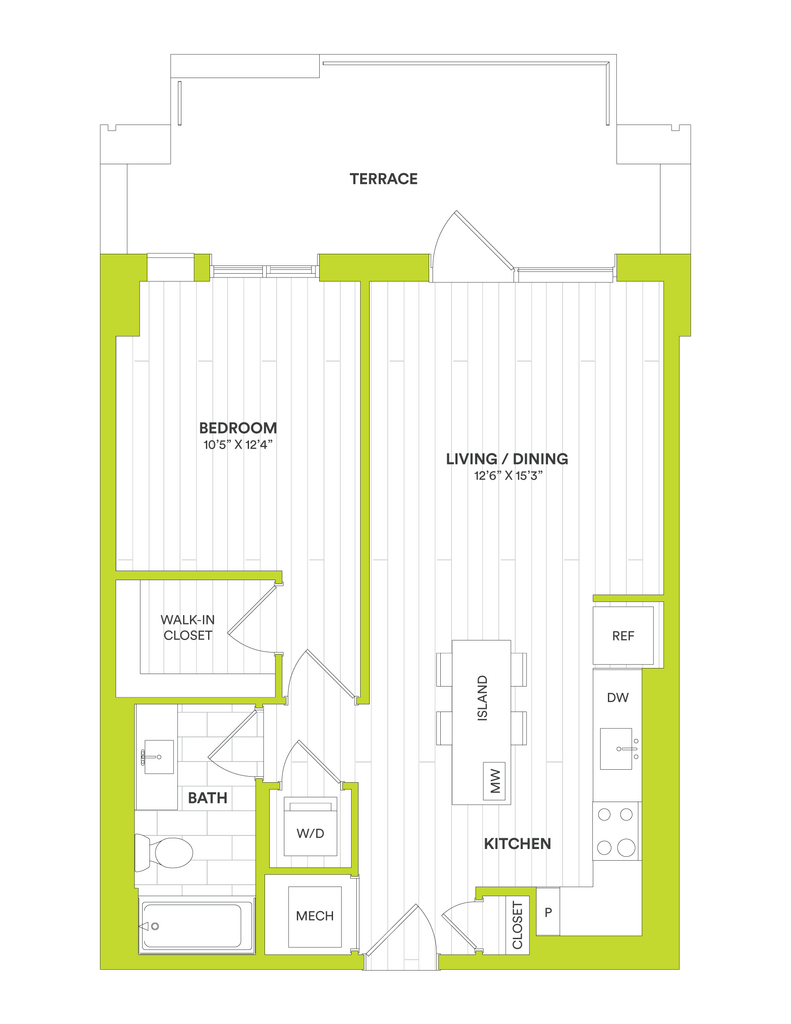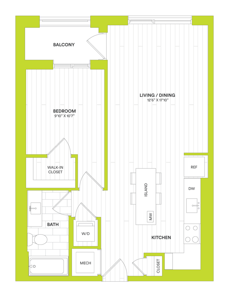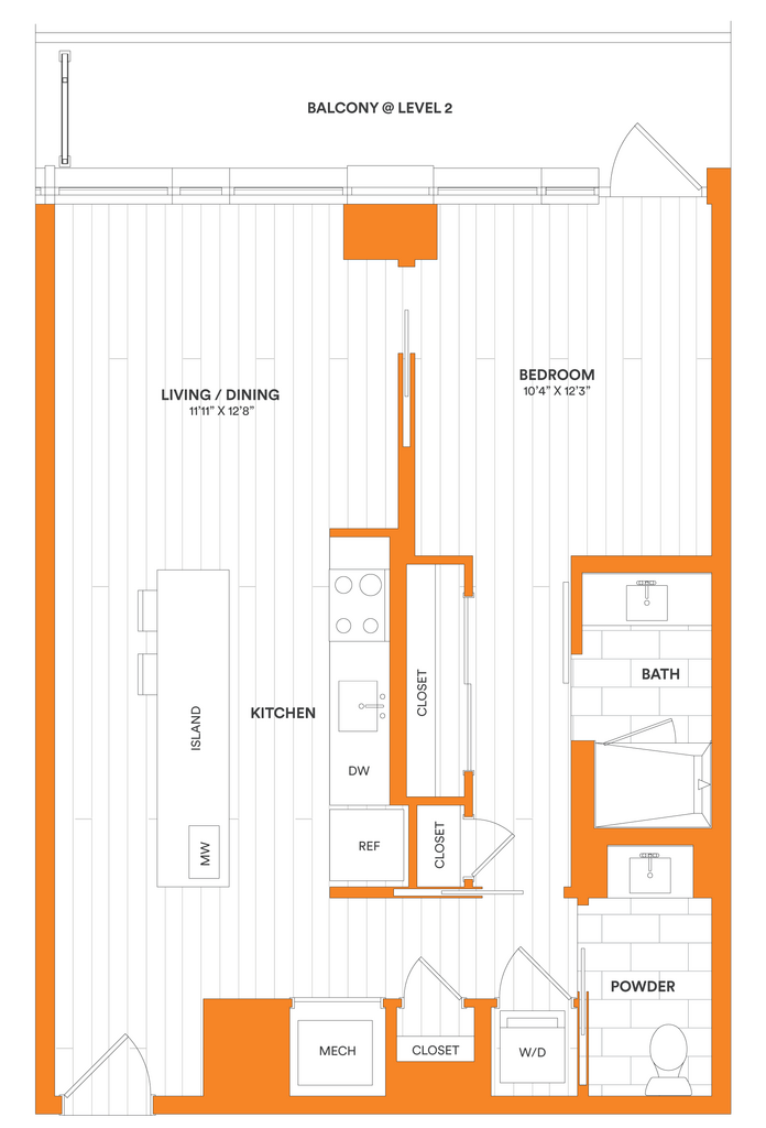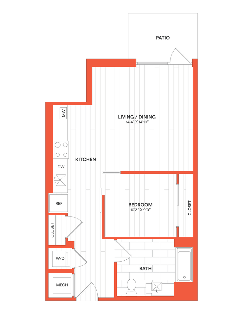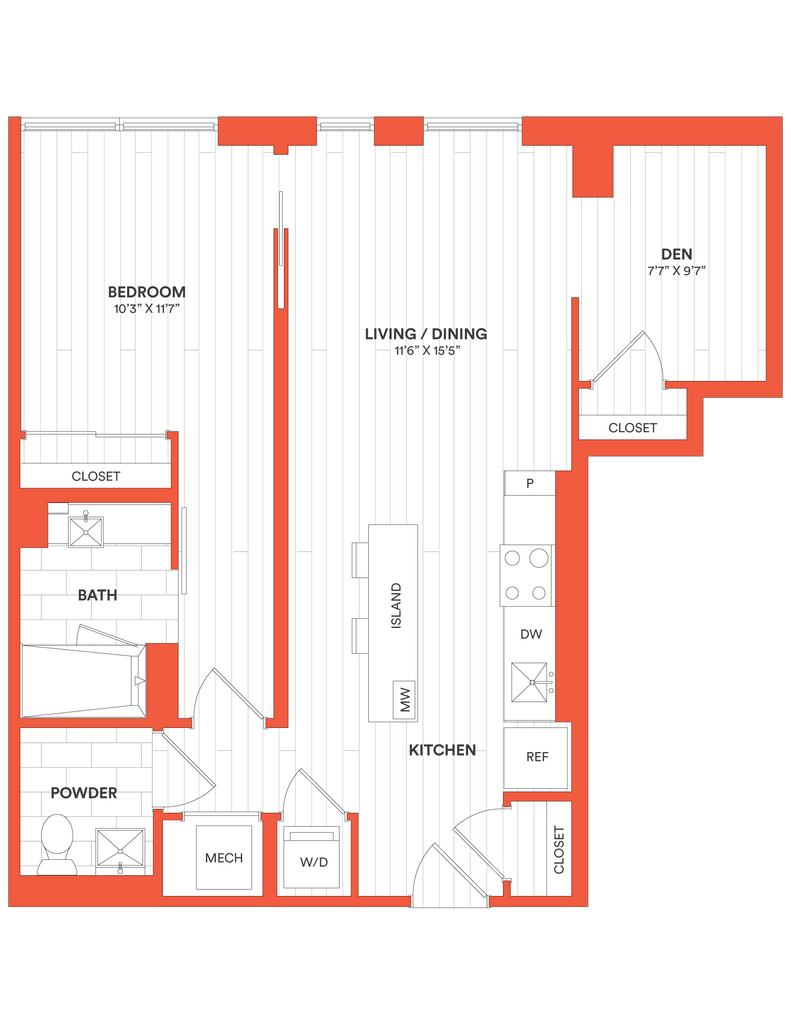1 Dormitorio, 1 Baño, 713 pies²Disponible AhoraGalería del Modelo