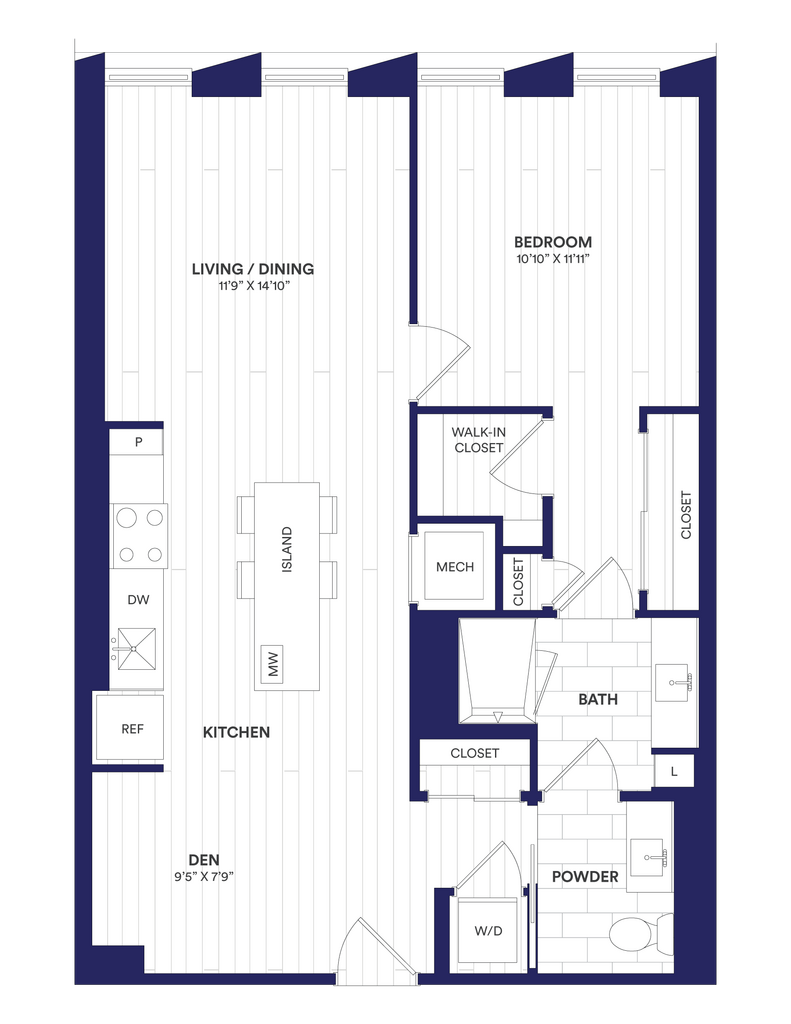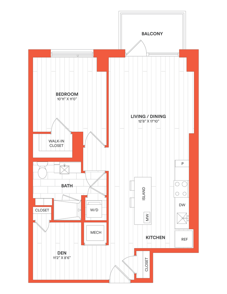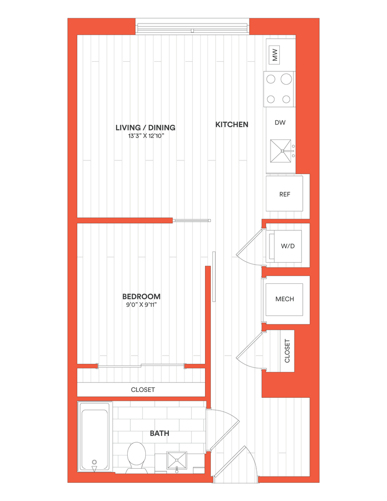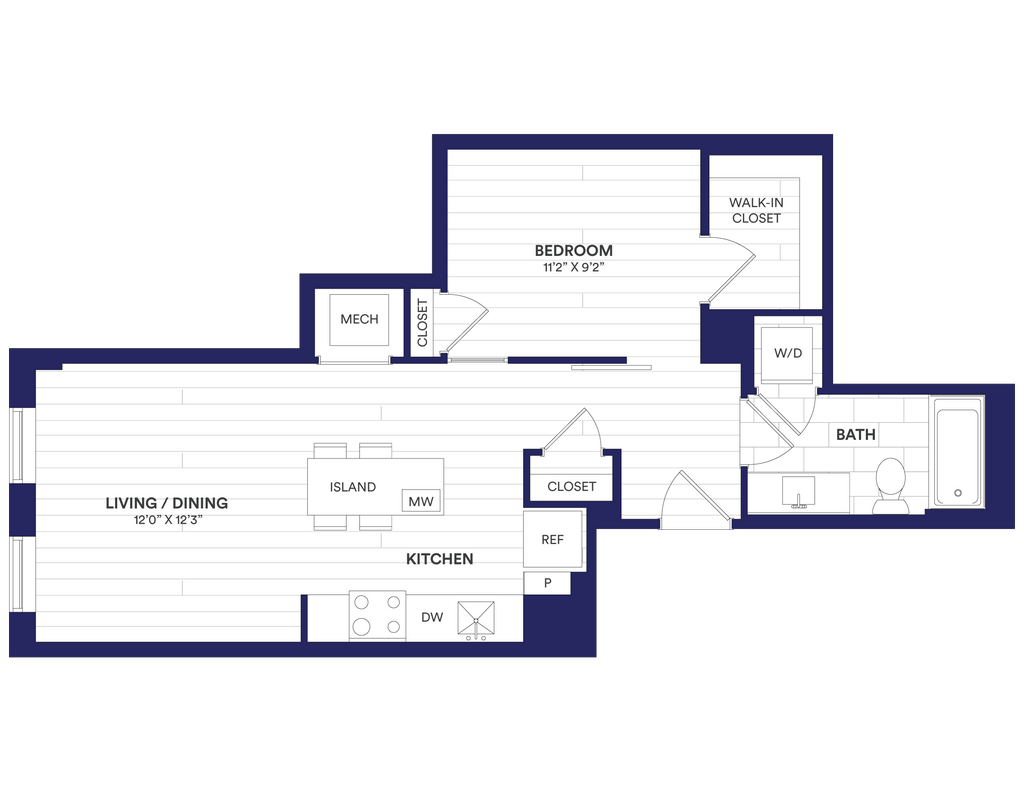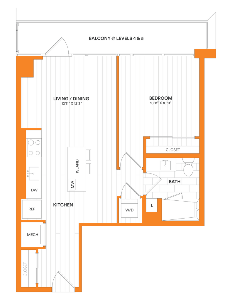 1 Dormitorio, 1 Baño, 713 pies²Disponible AhoraGalería del Modelo