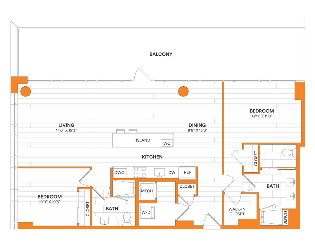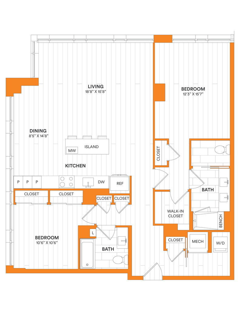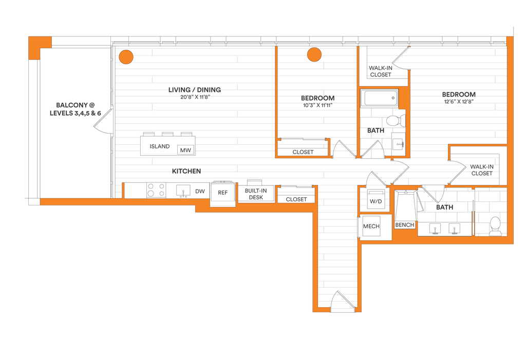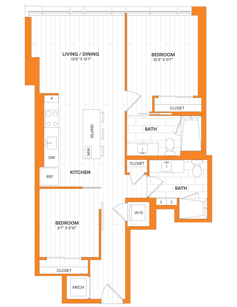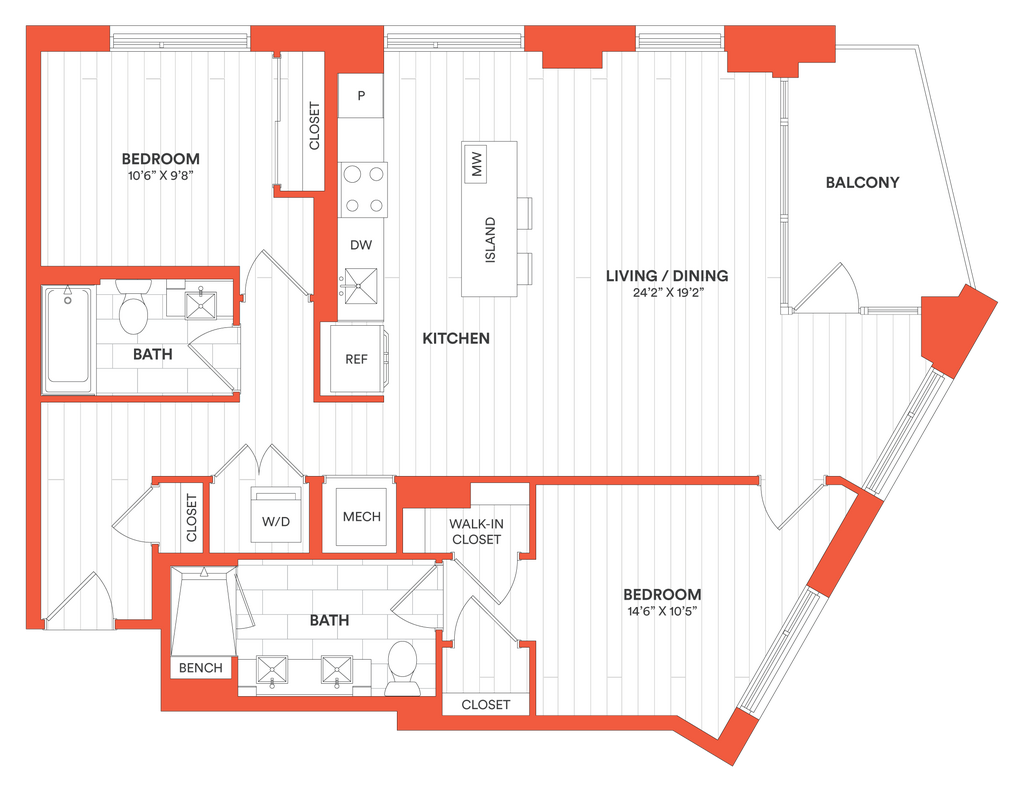 Modelo de apartamento: 1 Bed/1 Bath-B2 TYP 04Desde $2,8901 Dormitorio, 1 Baño, 772 sq ftDisponible Ahora![]()