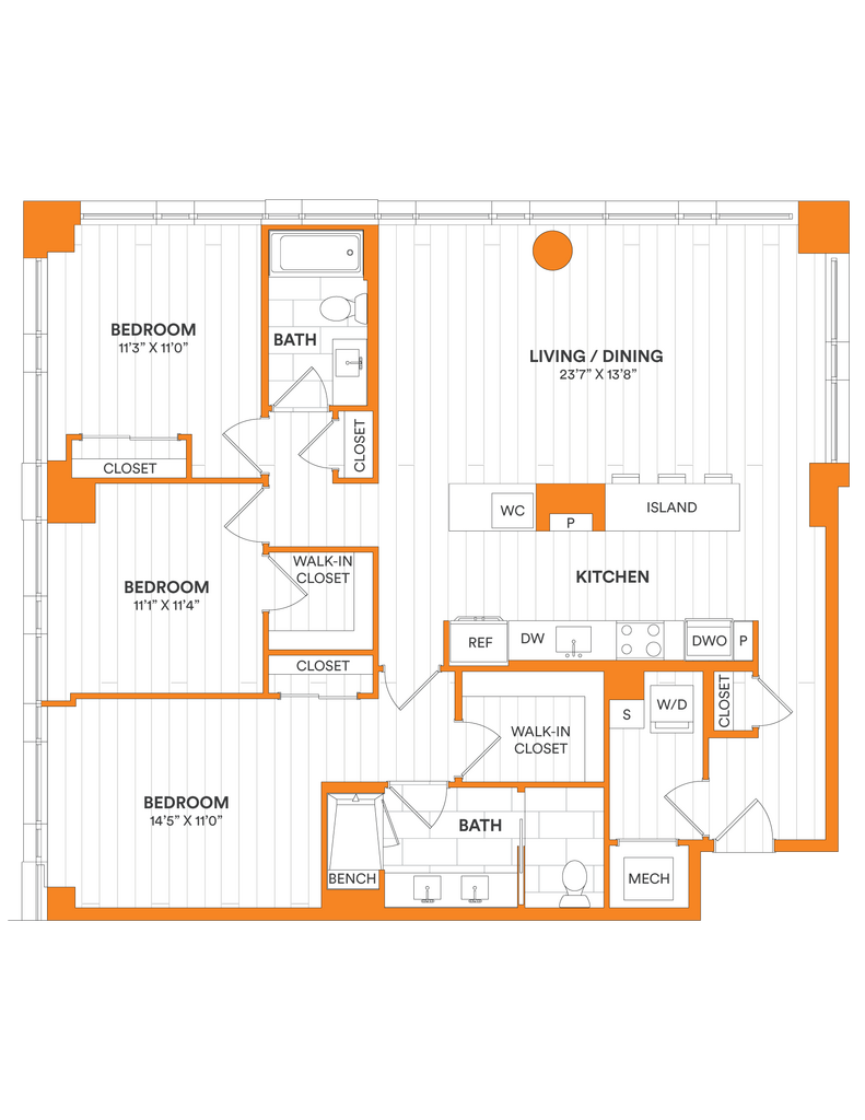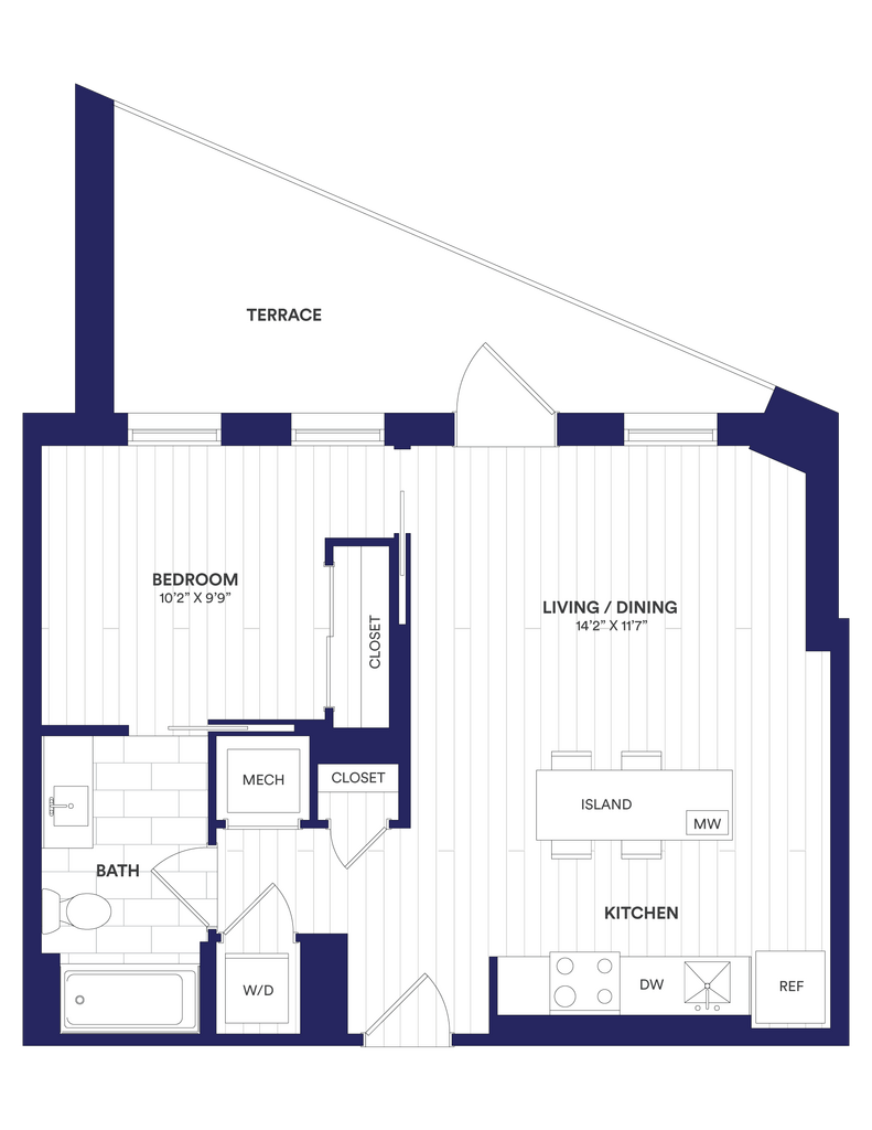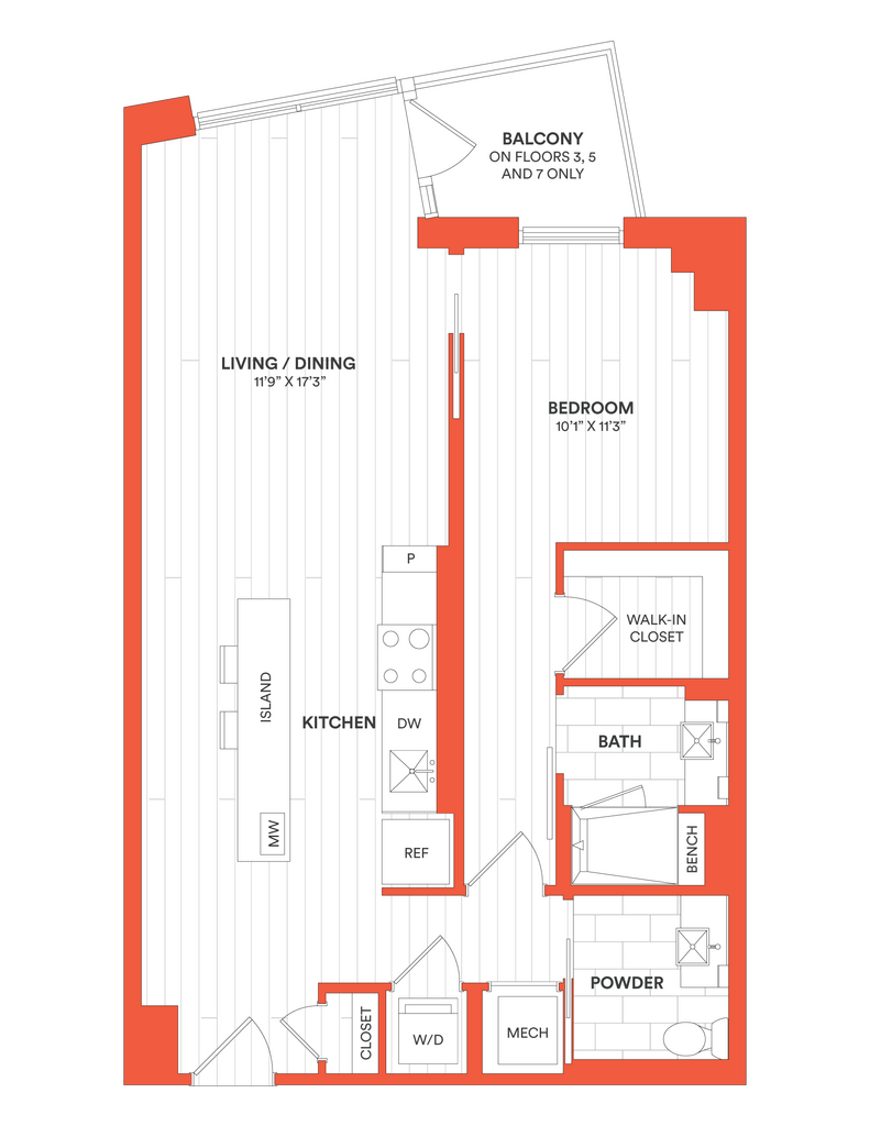 1 Bed/1 Bath JR-F TYP 07 - Plano 1 Unidad de apartamento: F-507Modelo de apartamento: 1 Bed/1 Bath JR-F TYP 07$2,6611 Dormitorio, 1 Baño, 713 sq ftDisponible Ahora![]()
