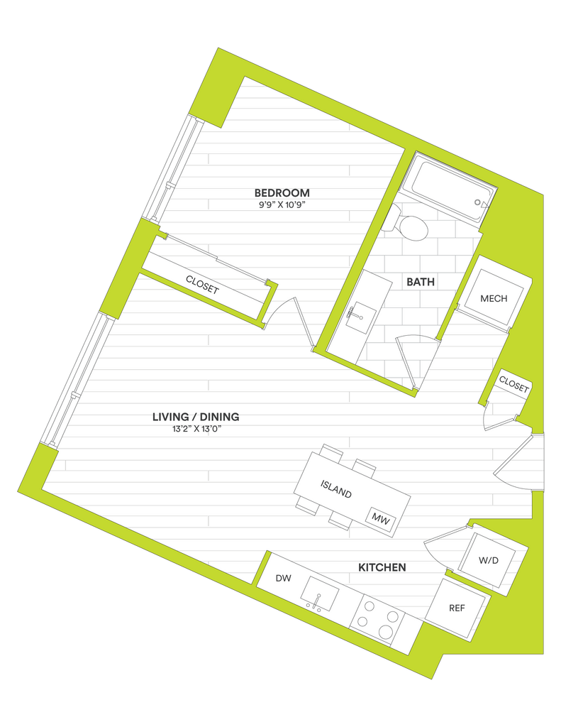 Modelo de apartamento: Studio-C TYP 12Llame para PreciosEstudio, 1 Baño, 499 sq ftNo Disponible![]()