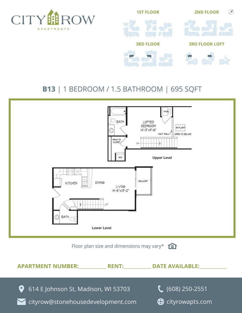 Discover City Row Apartments in Downtown Madison, offering affordable, eco-friendly townhouse-style apartments with easy access to dining, shopping, parks, lakes, and major highways. AFFORDABLE RENT PROGRAM City Row offers reduced rent amounts as part of an Affordable Rent Program. Affordable rent apartments are subject to moderate income and student status restrictions. Households must meet program eligibility requirements. 50% Income Limit 1 Person - less than $45,450 2 People - less than $51,950 3 People - less than $58,450 4 People - less than $64,900 5 People - less than $70,100 6 People - less than $75,300 60% Income Limit 1 Person - less than $54,540 2 People - less than $62,340 3 People - less than $70,140 4 People - less than $77,880 Maximum income is determined by household size and is based on gross annual (pre-tax) income. Moderate-income and student status restrictions apply. Units cannot be entirely occupied by full-time students. Some exemptions apply - contact us for details. Tenant Liability Insurance Required. (Minimum coverage of 100K) (Pricing, inclusions, and eligibility subject to change)