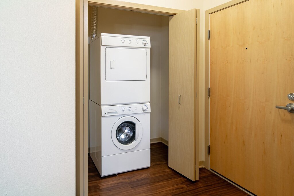 - Paquete completo de electrodomésticos que incluye lavadora y secadora.