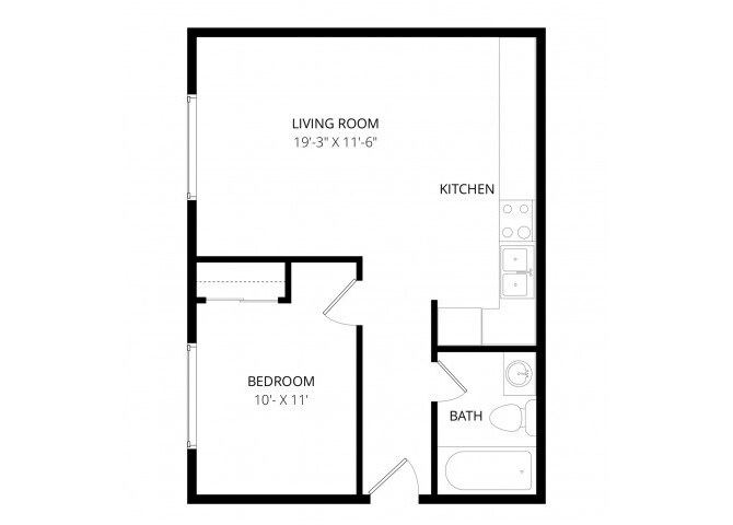 Studio - Plano 1 Unidad de apartamento: 113Modelo de apartamento: StudioEstudio, 1 Baño, 348 sq ftDisponible December 30, 20251 Dormitorio