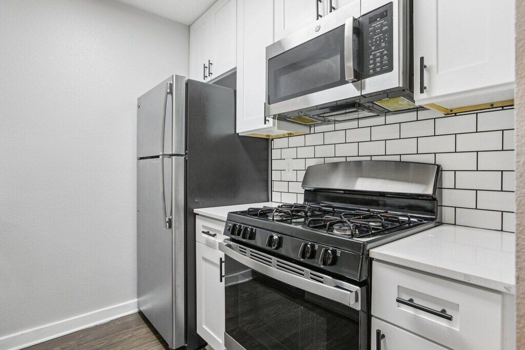 - Cocina moderna con electrodomésticos de acero inoxidable
