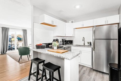 Apartamentos renovados con un aspecto moderno y limpio y ¡nuevo TODO! Brillante sala de estar de concepto abierto con vista a la cocina. La cocina cuenta con gabinetes de agitadores blancos, granito negro y electrodomésticos de acero inoxidable. Baño de azulejos con tocador, inodoro, bañera y periferia nuevos. Ambos dormitorios tienen acceso a un espacio al aire libre oculto detrás de cercas de privacidad. Lavadora y secadora en unidades con un cargo adicional. Nuevo sendero para caminar detrás del complejo. El alquiler cuesta $975 por mes con un depósito de $975. Las mascotas son bienvenidas con un cargo no reembolsable de $350 por mascota y un cargo adicional de $25 por mes.
