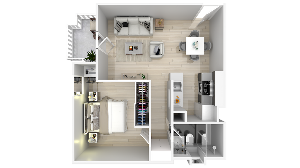 1 Dormitorio, 1 Baño, 565 pies²El más grandeEsta opción tiene las unidades más grandes para este modeloGalería del Modelo