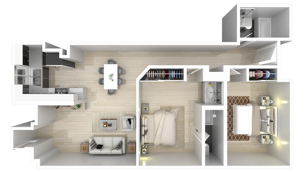 2 Dormitorios, 2 Baños, 965 pies²Disponible AhoraGalería del Modelo