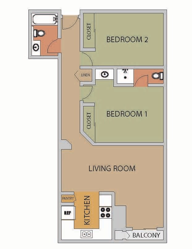 2x2 - Plano 2 Unidad de apartamento: 84521Modelo de apartamento: 2x2Desde $2,3502 Dormitorios, 2 Baños, 965 sq ftDisponible Ahora