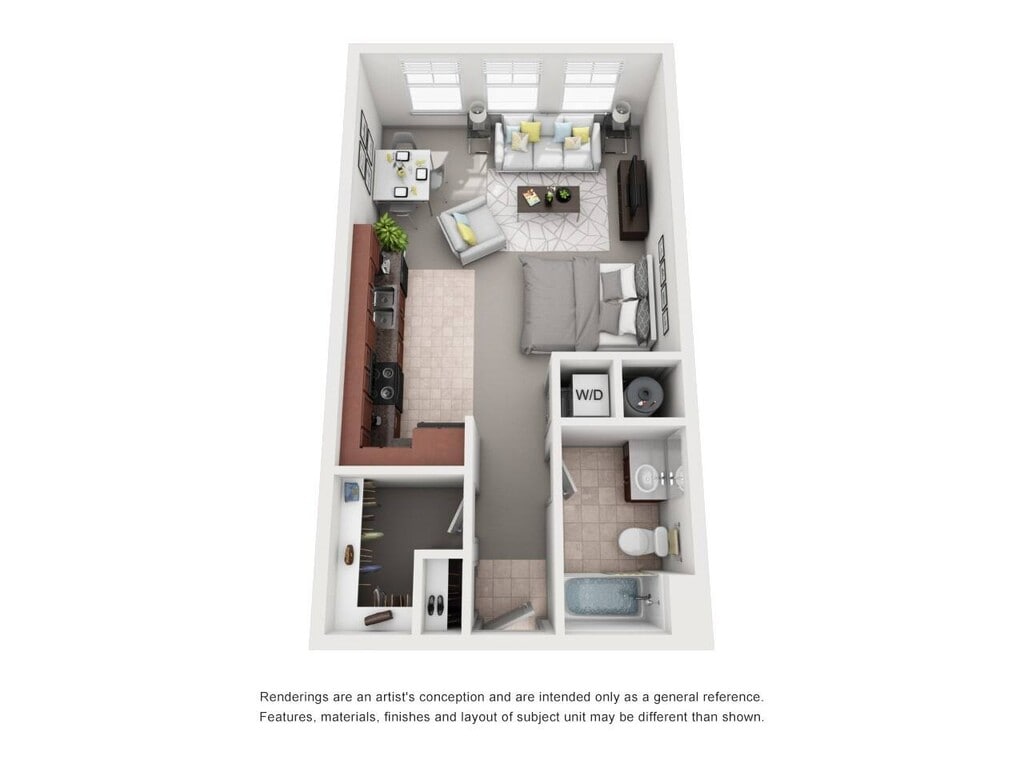 Estudio, 1 Baño, 591 pies²Disponible AhoraGalería del Modelo