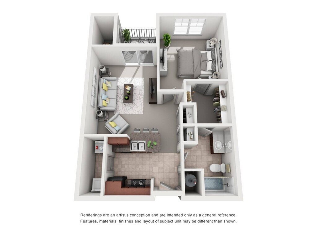 Modelo de apartamento: A1Desde $1,219Estudio, 1 Baño, 591 sq ftDisponible Ahora![]()