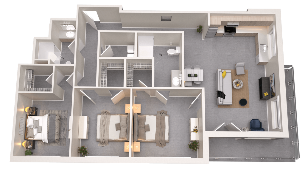 Modelo de apartamento: 3 BedroomDesde $2,1043 Dormitorios, 2 Baños, 1398 sq ftDisponible Ahora![]()