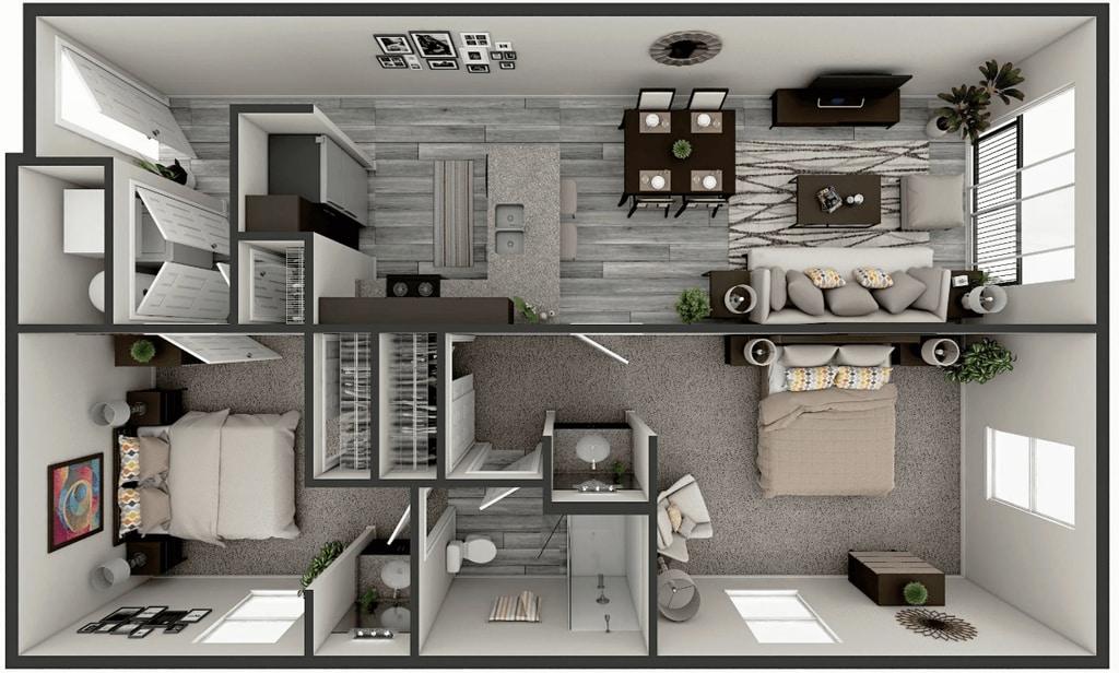 2 Dormitorios, 2 Baños, 1287 pies²El más grandeEsta opción tiene las unidades más grandes para este modeloGalería del Modelo
