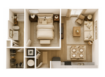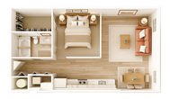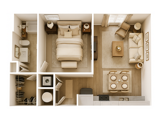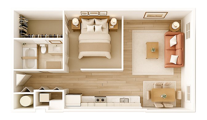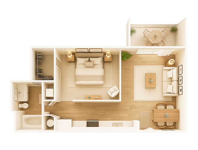 1 Dormitorio, 1 Baño, 713 pies²Disponible AhoraGalería del Modelo