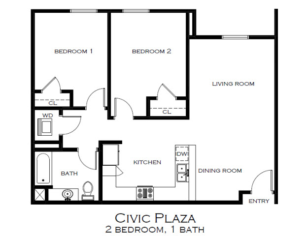 2 Dormitorios, 1 Baño, 817 pies²Galería del Modelo