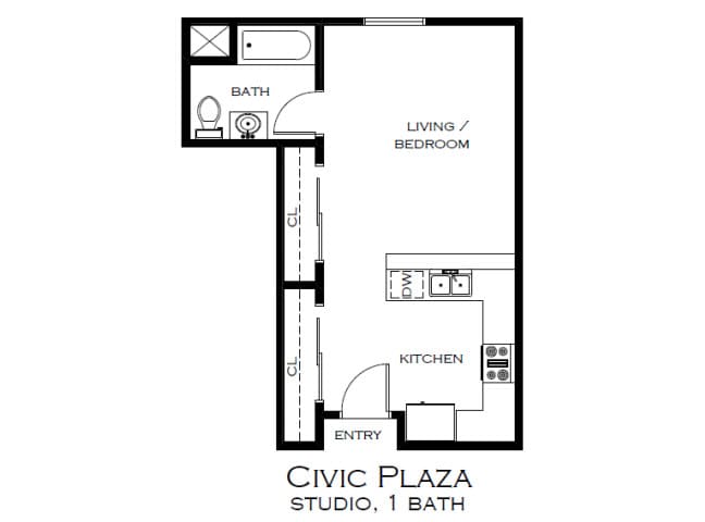 Modelo de apartamento: StudioEstudio, 1 Baño, 453 sq ftNo DisponibleStudio - Plano 1 1 Dormitorio