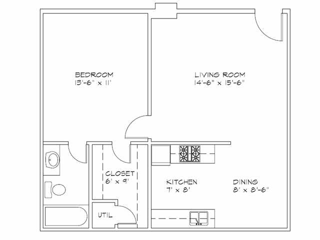 1 Dormitorio, 1 Baño, 565 pies²Disponible Dec 1Galería del Modelo