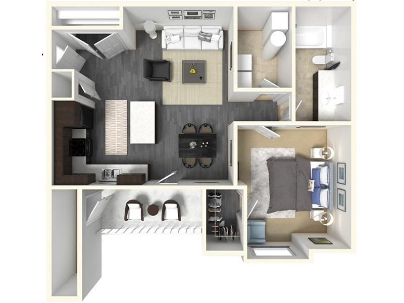 Modelo de apartamento: 1x1C1 Dormitorio, 1 Baño, 711 sq ftDisponible March 10, 2026![]()