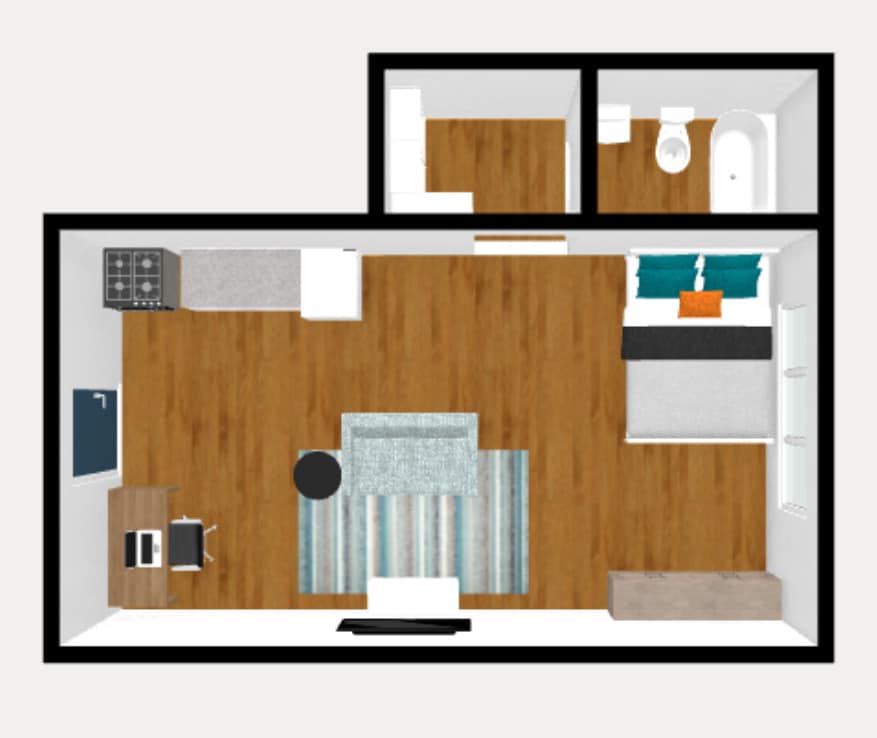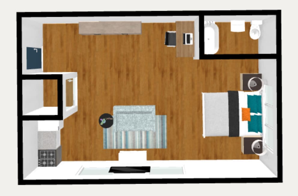 Estudio, 1 Baño, 450 pies²Disponible Oct 15Galería del Modelo